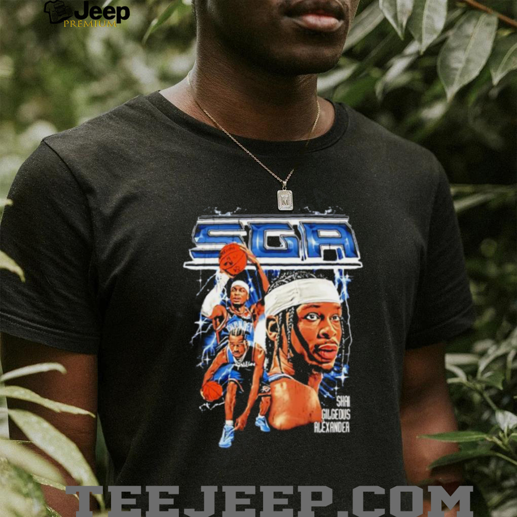 The “SGA Shai Gilgeous-Alexander graphic shirt” is a piece of apparel designed to celebrate the style and persona of Shai Gilgeous-Alexander (SGA), a prominent NBA player. This shirt aims to capture his unique on-court and off-court presence through graphic design, appealing to fans who admire his talent and fashion sense. It serves as a piece of merchandise that showcases his individuality. The design prominently features graphic elements related to Shai Gilgeous-Alexander.