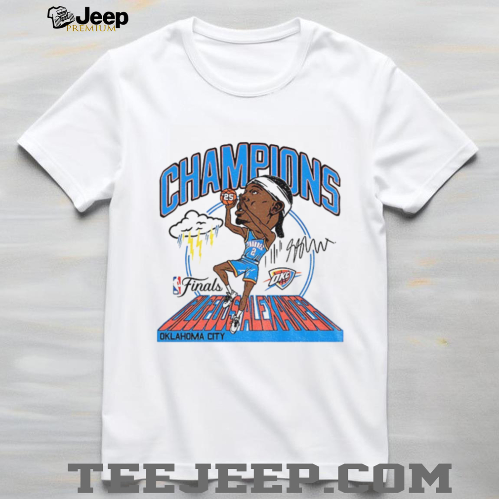 Where to Buy the Shai Gilgeous-Alexander Caricature Oklahoma City Thunder NBA Finals Champions Signature Shirt