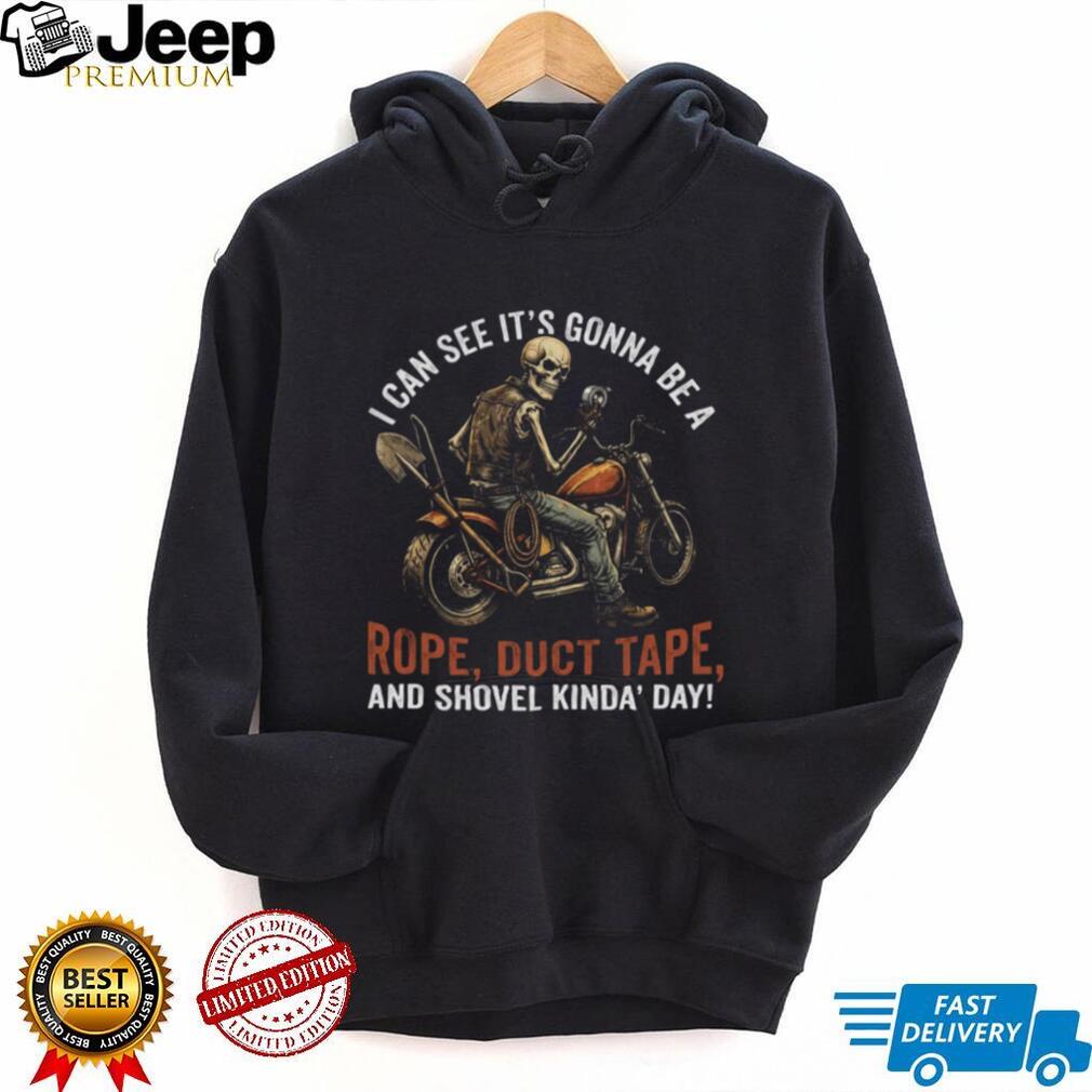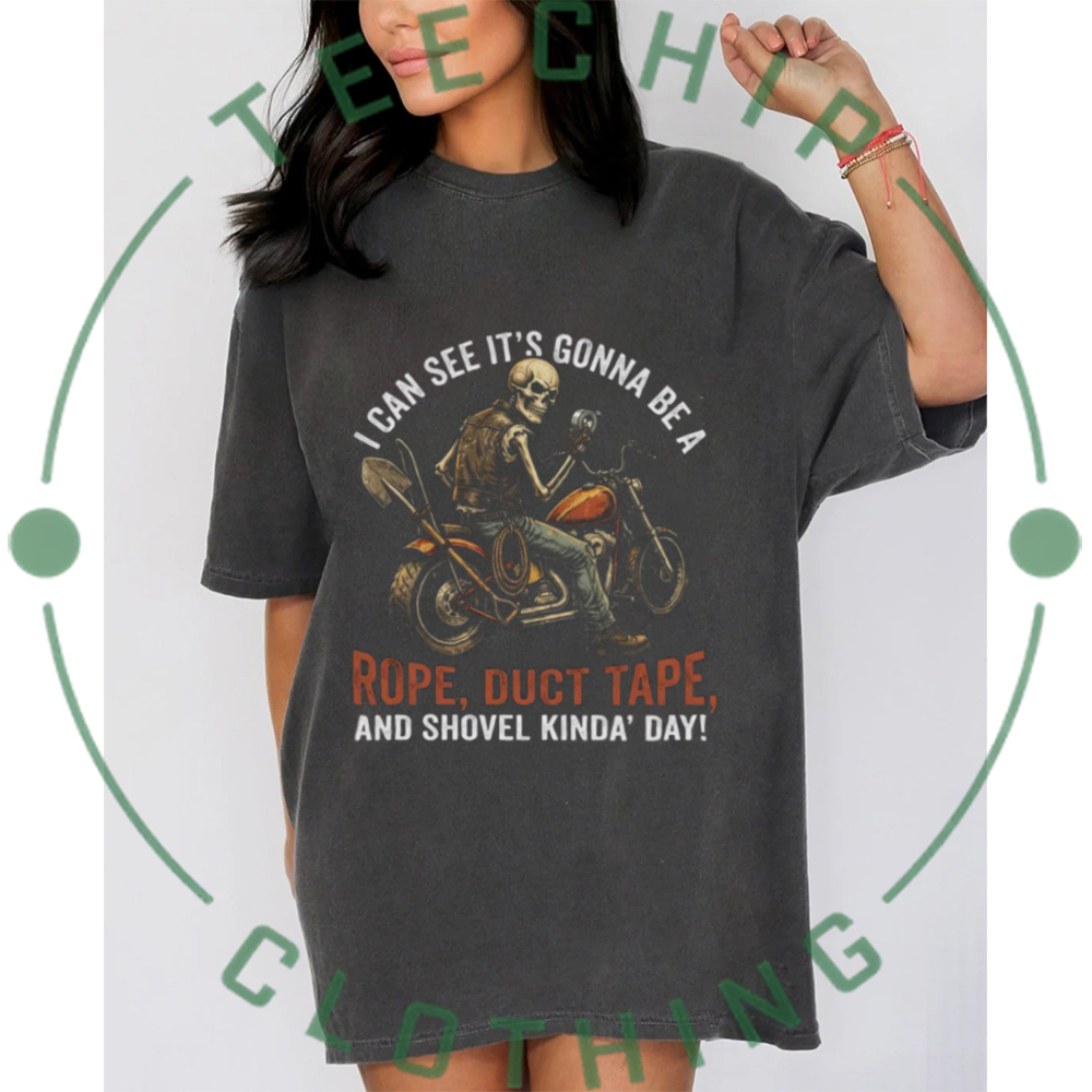 ()Skeleton Biker “Rope Duct Tape and Shovel” Dark Humor T Shirt, Treat yourself or make a great gift for your loved ones