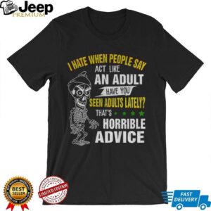 What Makes This Skeleton I Hate When People Say Act Like An Adult Have You Seen Adults Lately That’s Horrible Advice Shirt Epic