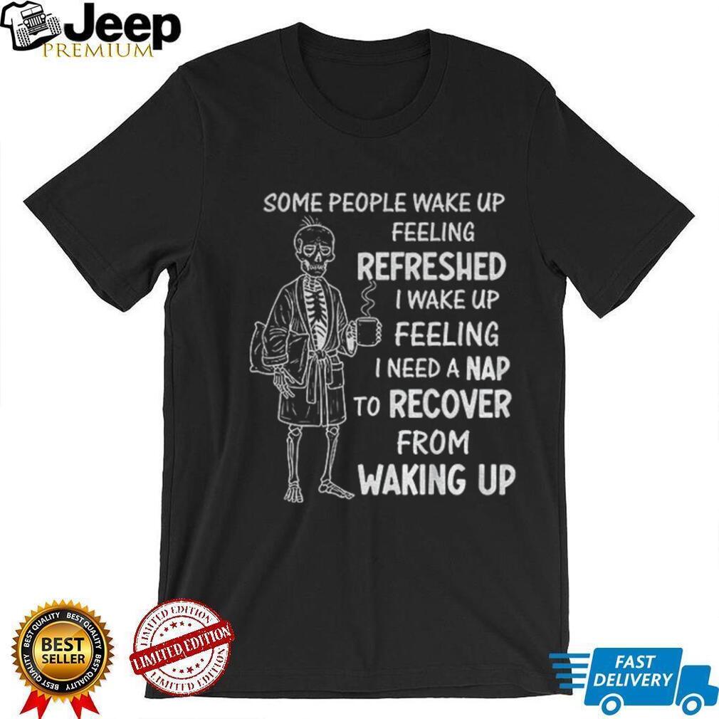This “Skeleton Some People Wake Up Feeling Refreshed” shirt perfectly captures the sentiment of those who struggle to greet the morning with enthusiasm. The design ensures you express how you feel with style and comfort. Wear this to work, school, or anywhere to get a laugh. Made from a soft and breathable fabric, this shirt is comfortable to wear all day long, even if you’re not feeling refreshed! It’s a relatable statement piece.