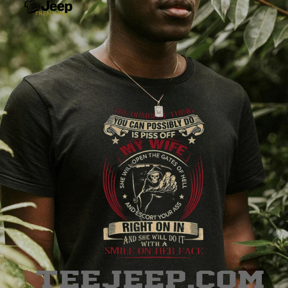 Skeleton the dumbest thing you can possibly do is piss of my wife right on in and she will do it shirt