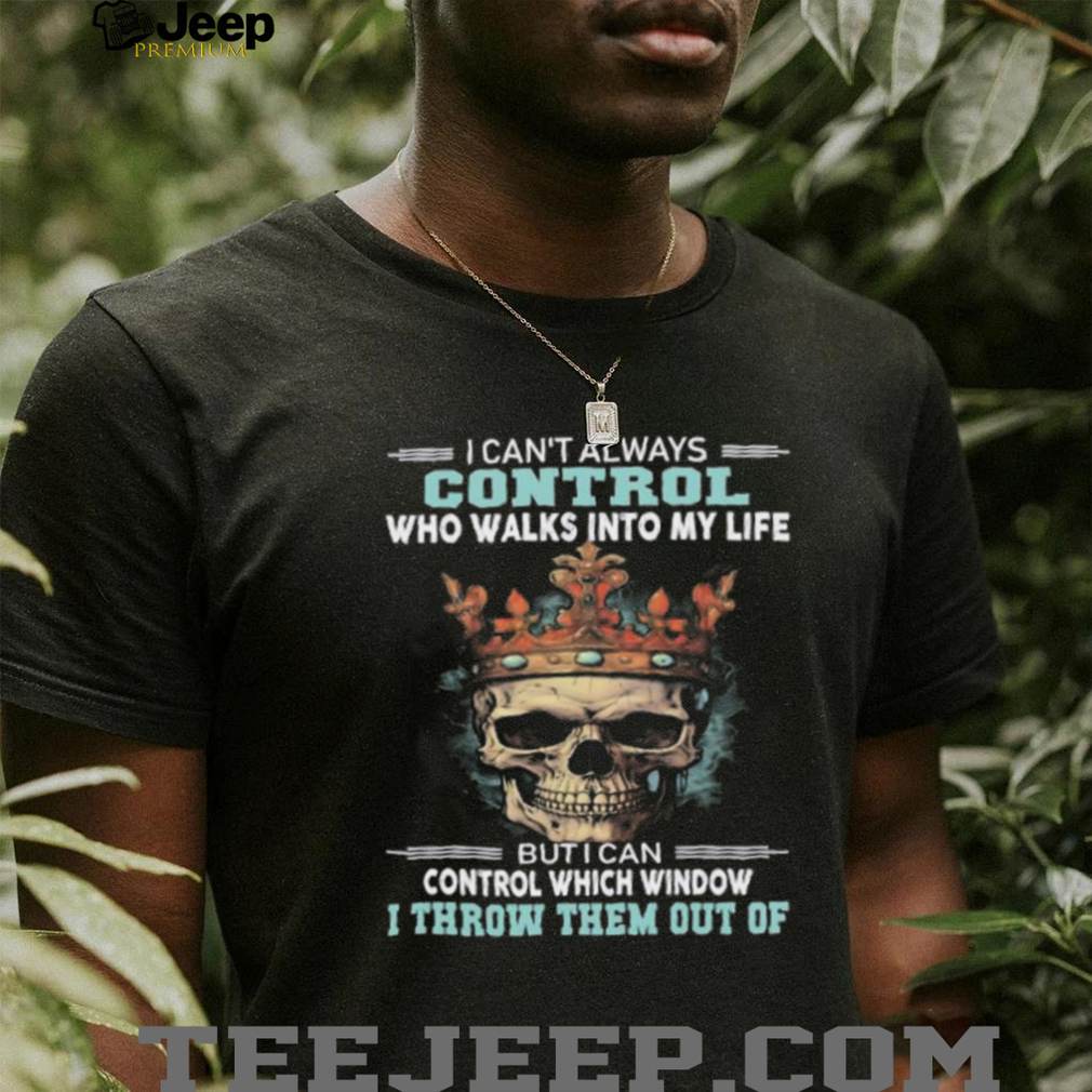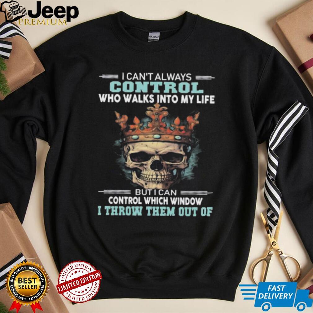 The “Skull I can’t always control who walks into my life but I can control which window I throw them out of shirt” is a piece of apparel that combines dark humor with a sense of frustrated control. This shirt aims to express a feeling of powerlessness over unwanted interactions, while also delivering a violent and darkly comedic retort. The skull imagery adds an edgy and macabre element to the message. The design prominently features a skull and the quoted phrase.