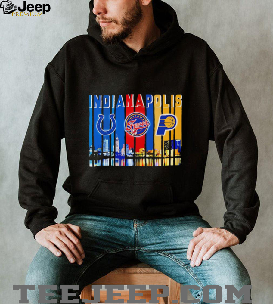 Whether you’re a die-hard fan of all things Indianapolis sports, or you just love the unique blend of our city’s skyline and our teams’ spirit, this shirt is a winning combination. It’s a stylish and spirited way to show your pride for the Colts’ thunder, the Fever’s fire, and the Pacers’ pace, all while celebrating the place they call home. Don’t miss out on the chance to wear your Indy pride on your chest. Grab your Skyline Indianapolis sports Colts Fever and Pacers logo shirt today and let the city know – you’re all in! Go Indy!