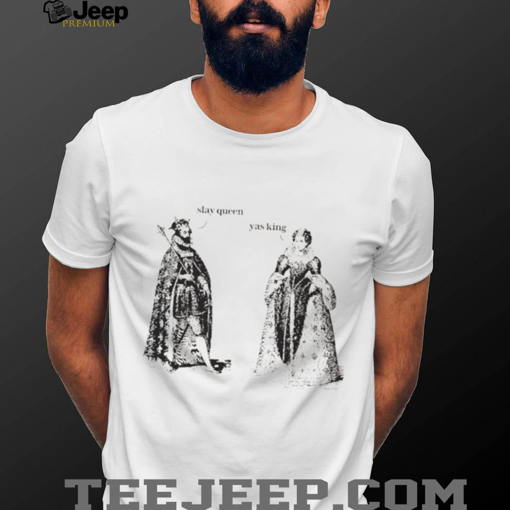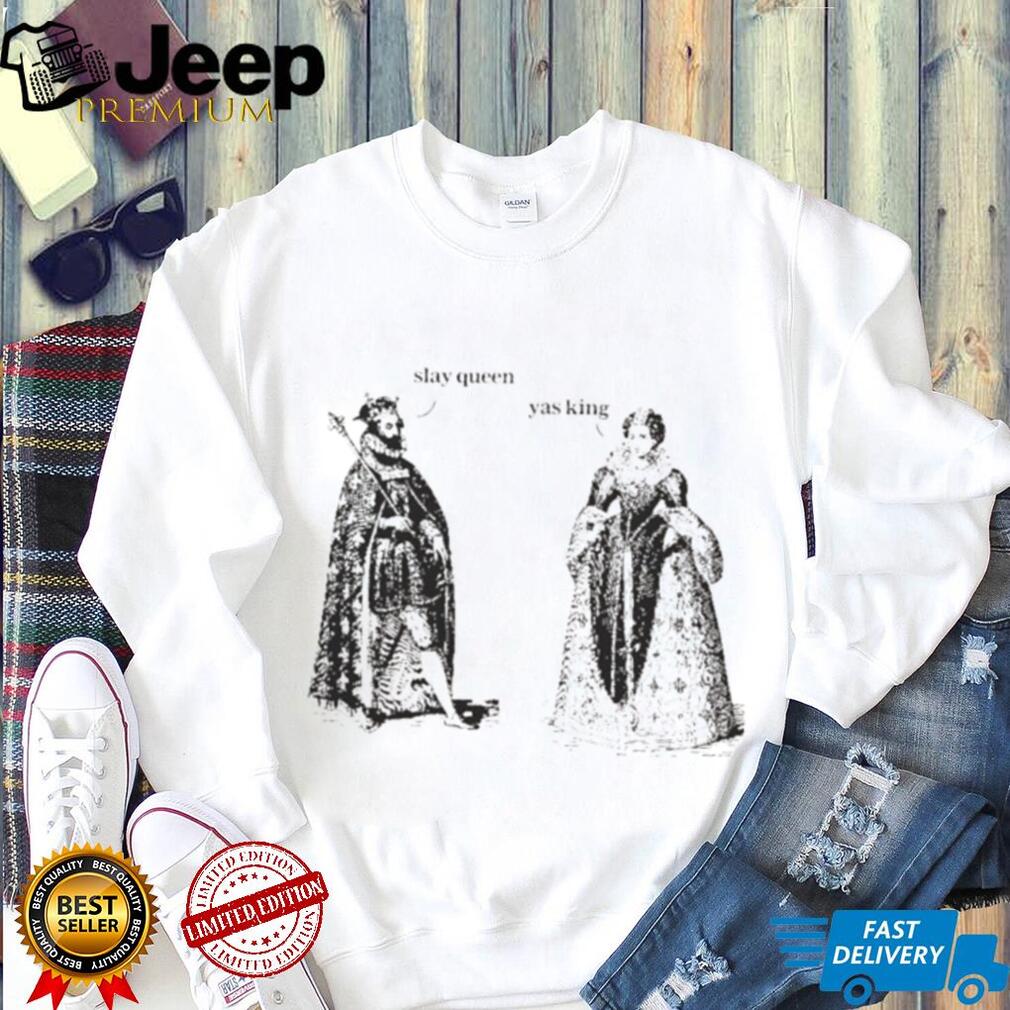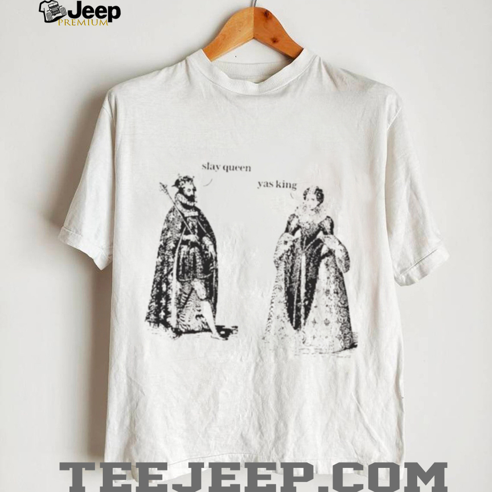 The “Slay Queen Yas King shirt” is a piece of apparel that uses popular slang phrases to express empowerment and confidence. This shirt aims to celebrate individuals who embody strength, style, and a commanding presence. The phrases “Slay Queen” and “Yas King” are used to acknowledge and praise these qualities, creating a sense of affirmation and celebration. The design prominently features these phrases.