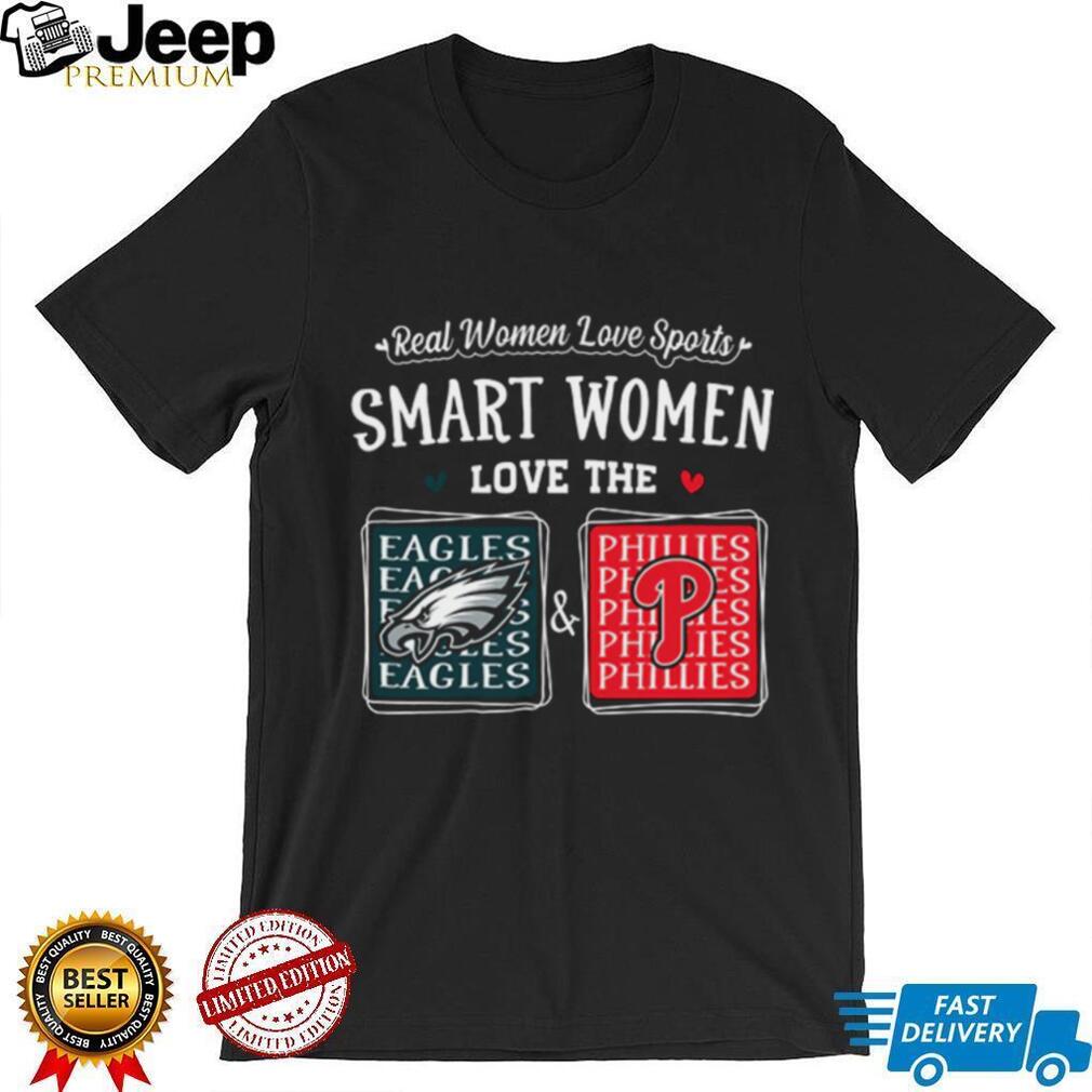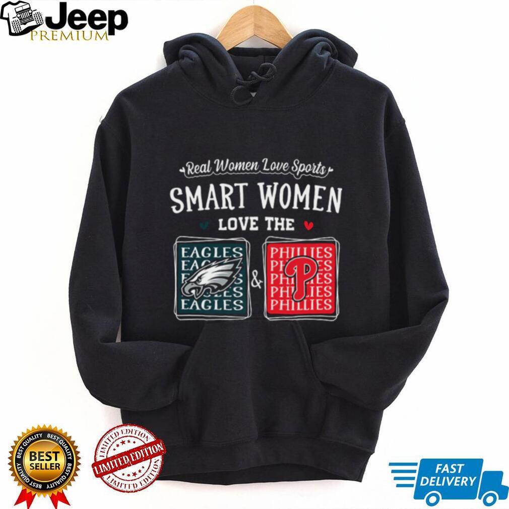 To keep your Smart Women Love the Eagles and Phillies Shirt looking great, machine wash it inside out with cold water and similar colors. Tumble dry on low heat or air dry. Avoid ironing directly on the design.