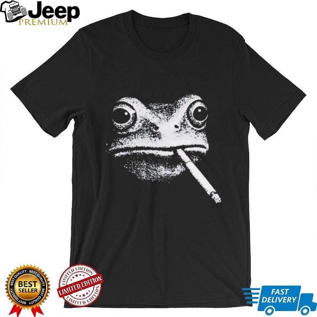 (Smoking Frog Vintage Aesthetic T Shirt Grumpy Toad Black and White Design)Soccer is played under the same rules by perhaps hundreds of millions of people around the world. American football is played to its fullest rules by a tiny fraction of that number. I strongly doubt the NFL will ever attain the international world-wide status of soccer or basketball (not the NBA) because American football is a uniquely American sport that isn’t played by people outside North America. English style Soccer (Association Football) rules the international sports field. American style football is expensive! Everything from the cost of the stadiums, Smoking Frog Vintage Aesthetic T Shirt Grumpy Toad Black and White Design, personal equipment, huge staff & coaching dept plus the players gigantic salaries will almost certainly make the American Football game out of the reach. Canada is the only other nation that I know of that has a football league like America.