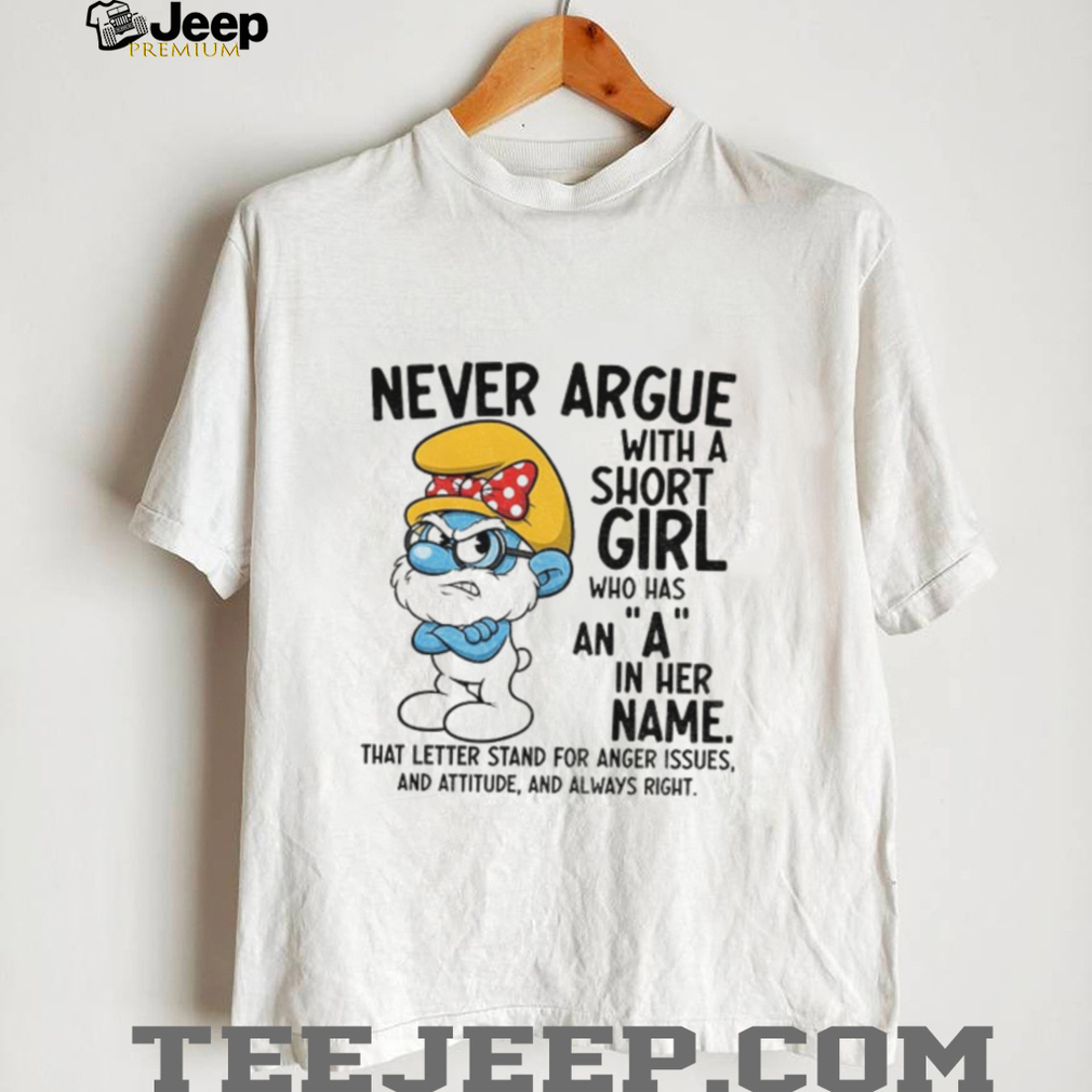 What Makes This Smurf never argue with a short girl who has an A in her name that letter stand for anger issues shirt Epic