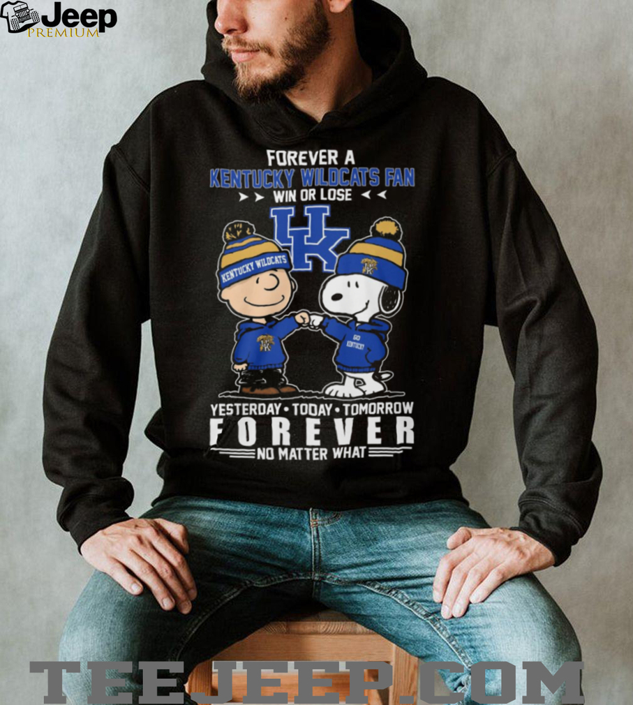 Fantasy football and sports betting have created a new type of fan who is more loyal to individual player statistics than to a specific city or franchise. This “”RedZone”” culture means that a fan in New York might be rooting for a touchdown by a rival team’s running back because he is on their Snoopy and Charlie Brown Forever A Kentucky Wildcats Fan Win or Lose T Shirt. While this has exploded the league’s popularity and television ratings, it has also changed the stadium atmosphere, with fans sometimes booing a kneel-down at the end of a game because it affected a point spread or a player’s rushing total. The NFL has fully embraced this shift, integrating betting lines into pre-game shows and partnering with major sportsbooks, marking a 180-degree turn from their historical stance against gambling.