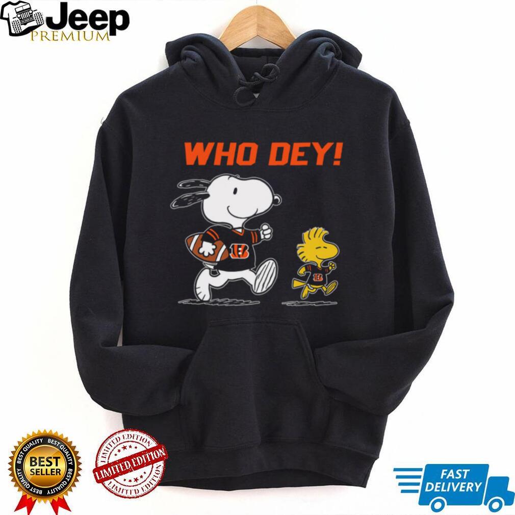 👕 About Snoopy and Woodstock Cincinnati Bengals Who Dey Football T Shirt