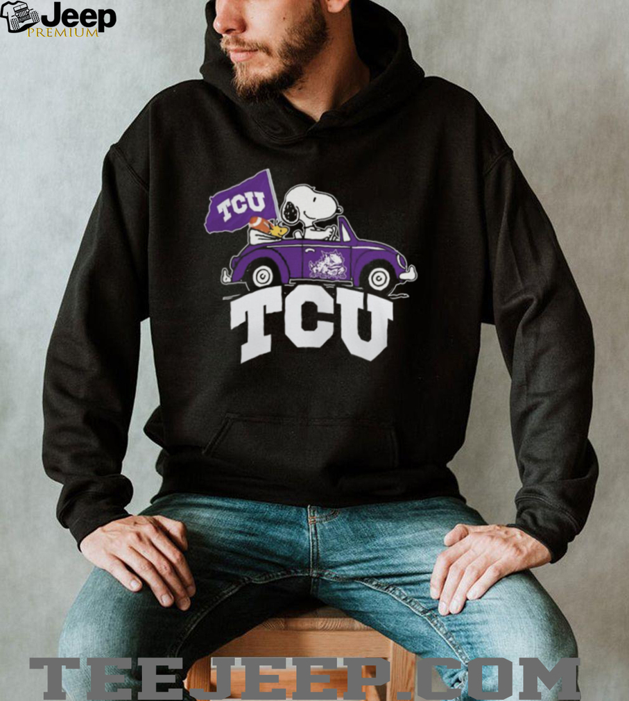 👕 About Snoopy and Woodstock Driving Car TCU Horned Frogs University T Shirt