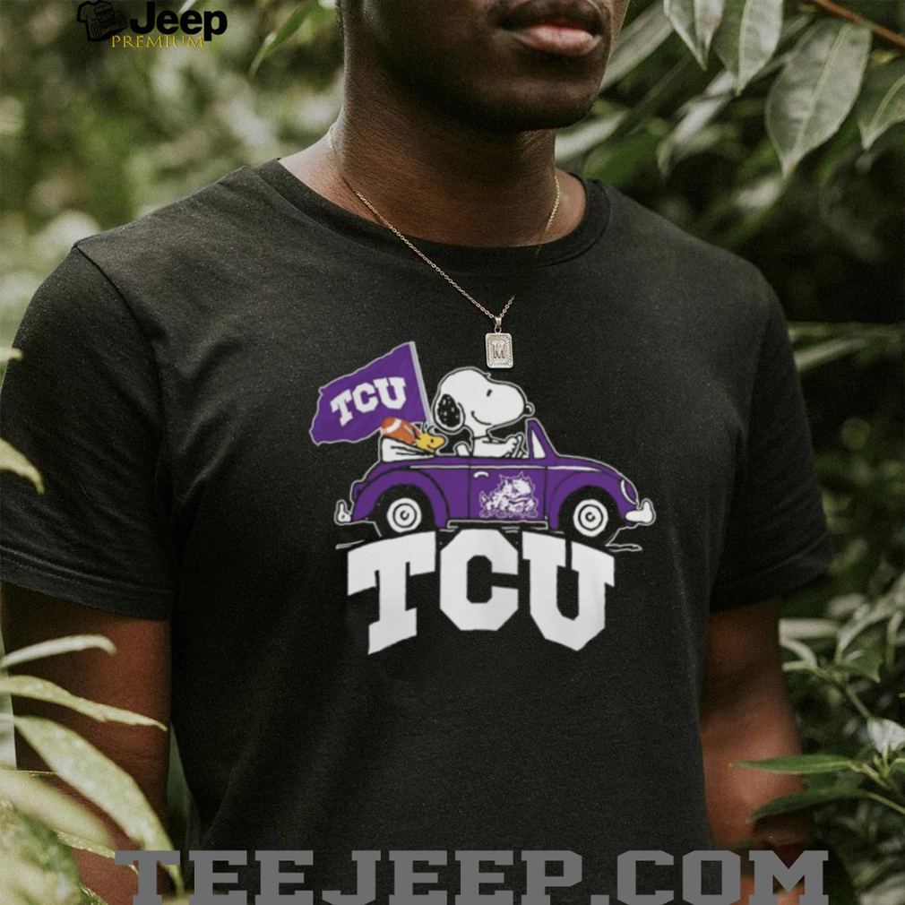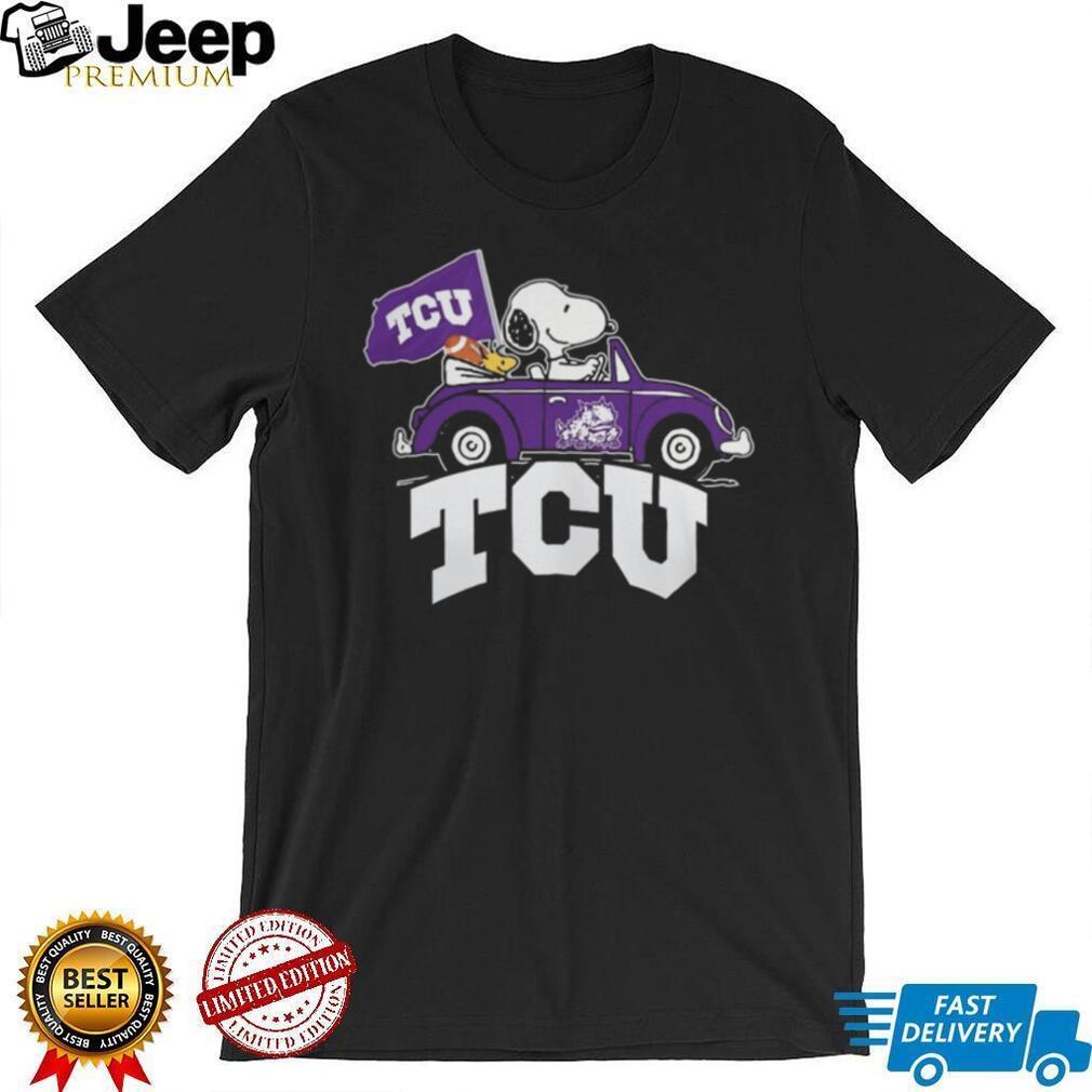 (Snoopy and Woodstock Driving Car TCU Horned Frogs University T Shirt)