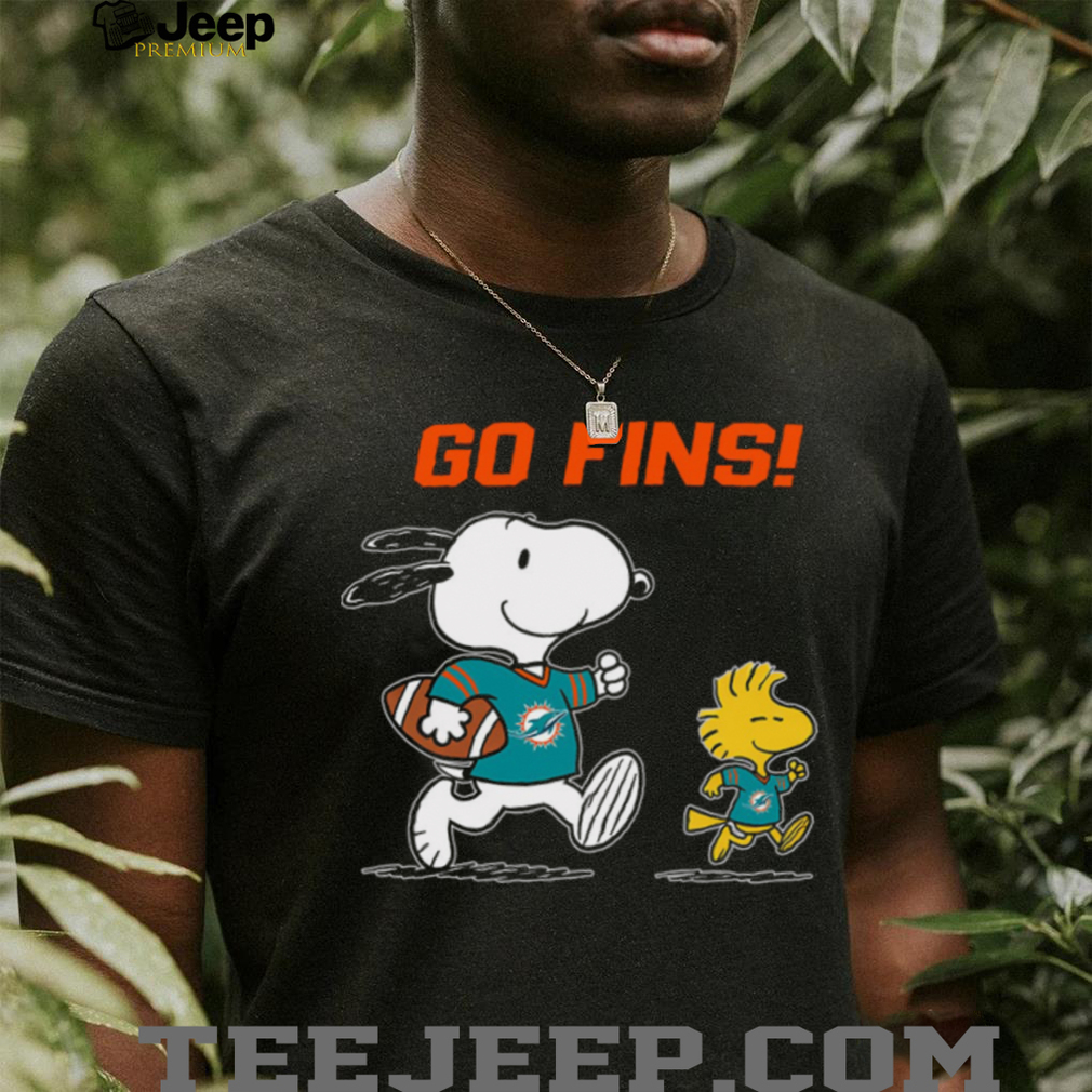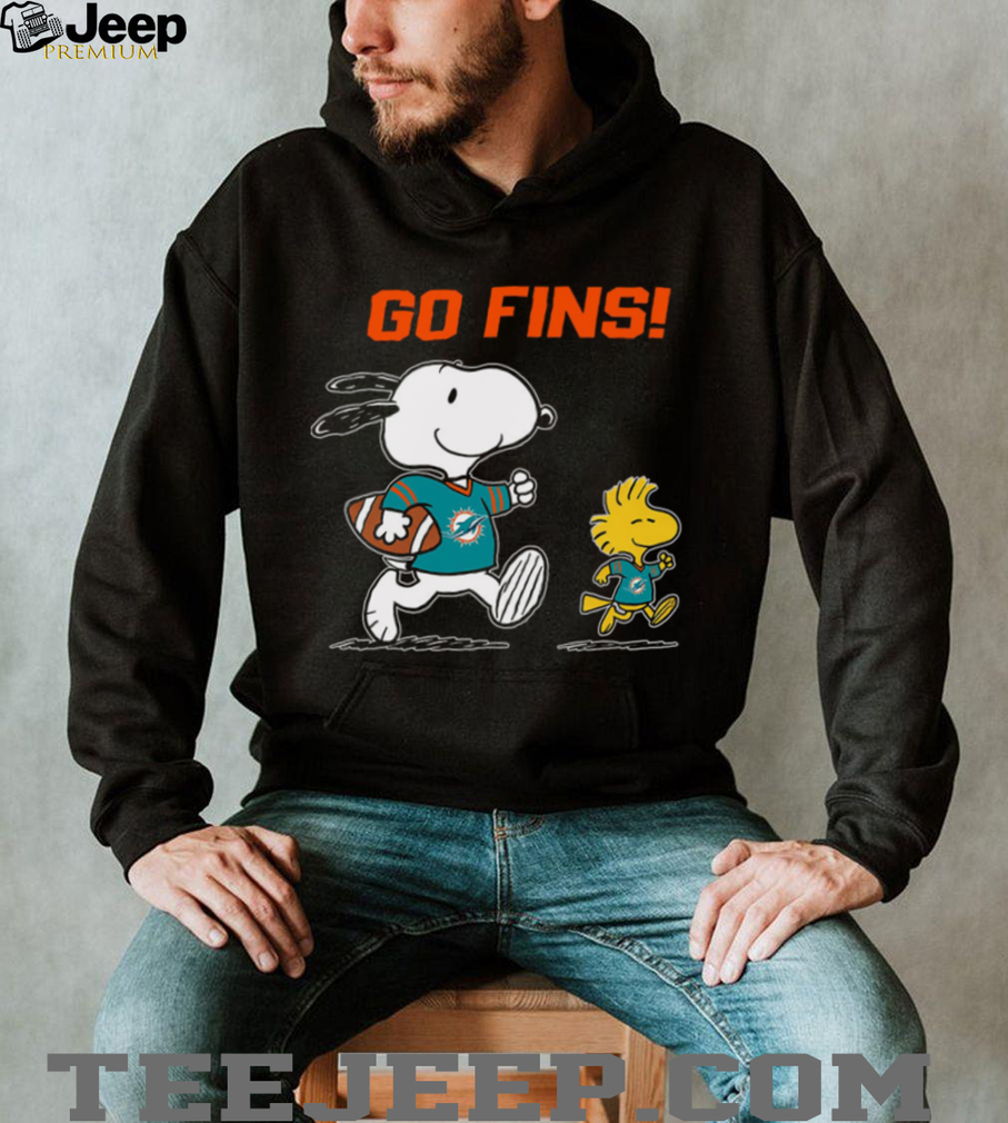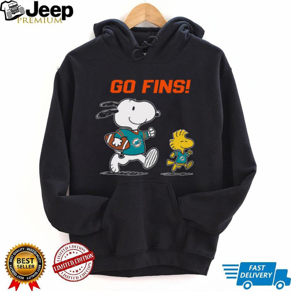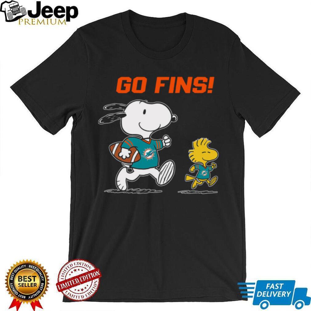 (Snoopy and Woodstock Go Fins! Miami Dolphins NFL T Shirt)