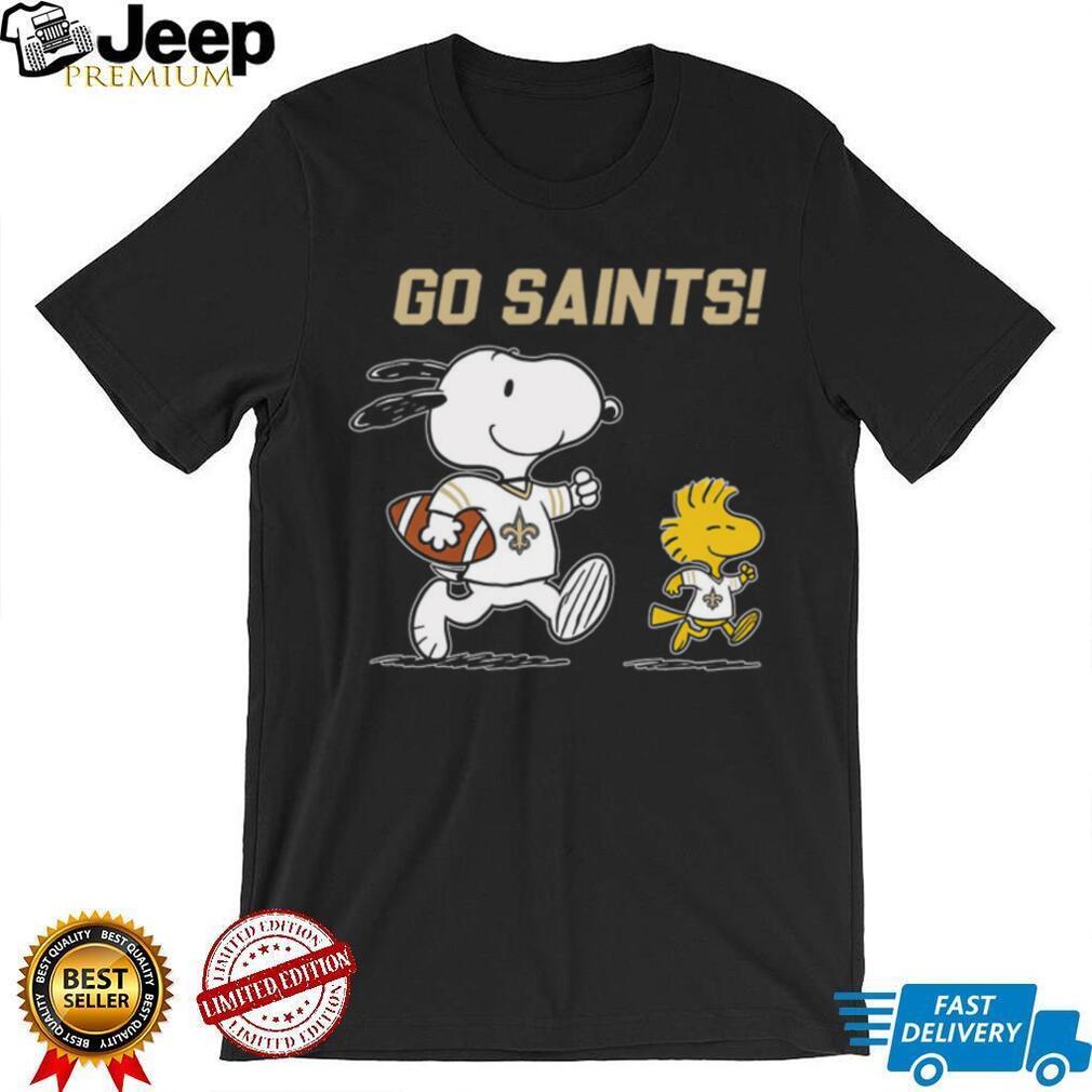 (Snoopy and Woodstock New Orleans Saints Go Saints Football T Shirt)