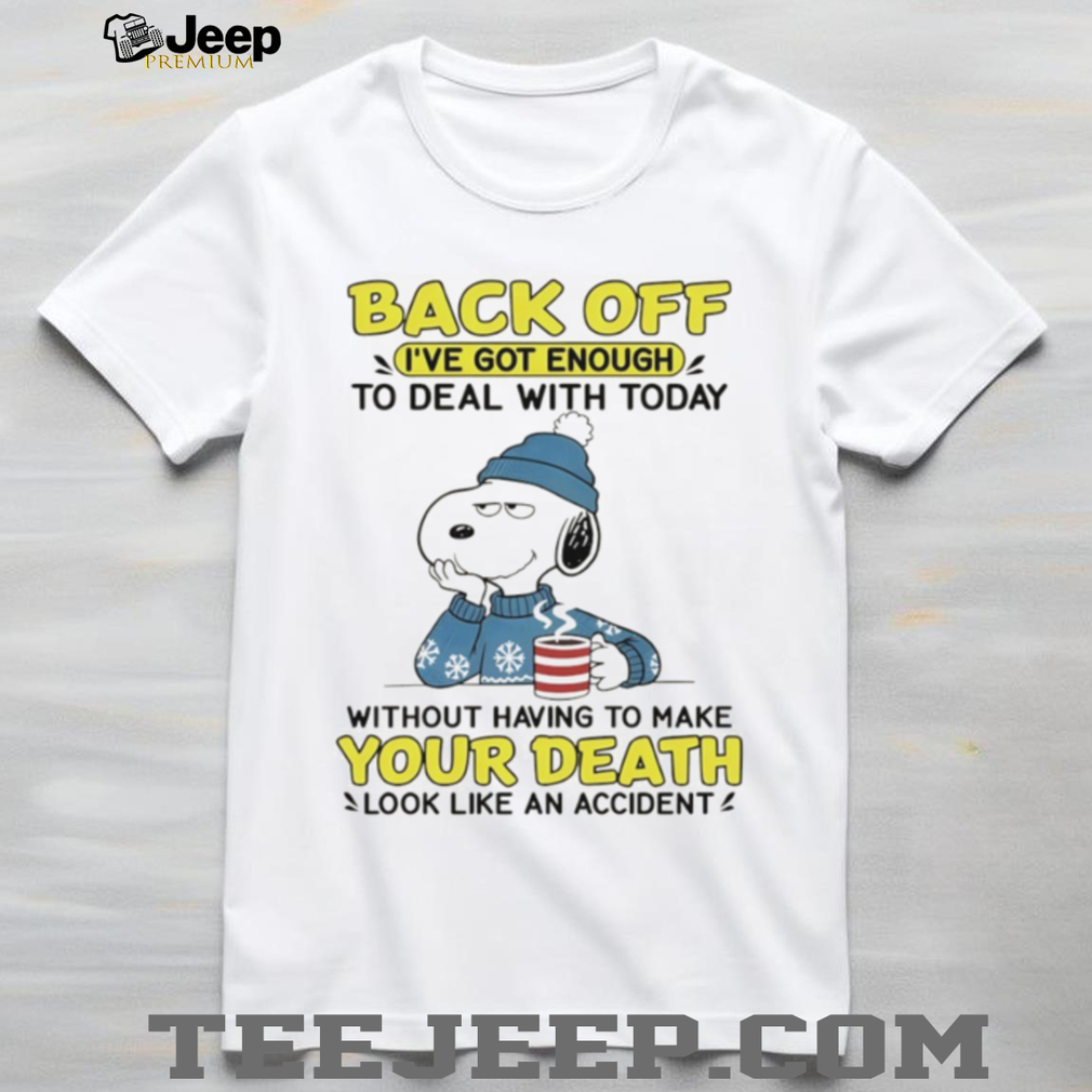 Some days, you just need everyone to back off! This Snoopy t-shirt perfectly captures those moments when you’re feeling overwhelmed and need a little personal space with a touch of dark humor. If you know what I mean, this is the shirt you need. Perfect for anyone who needs to show those what they’re feeling.