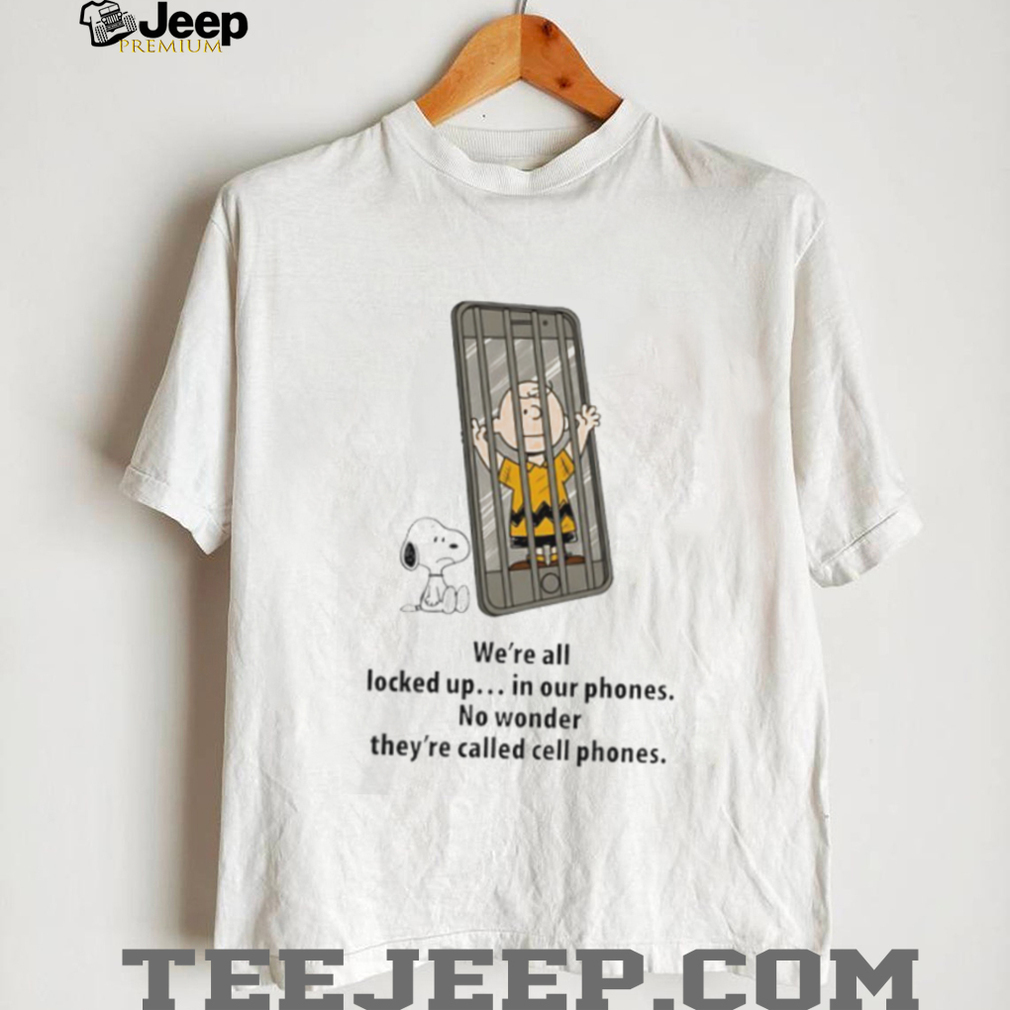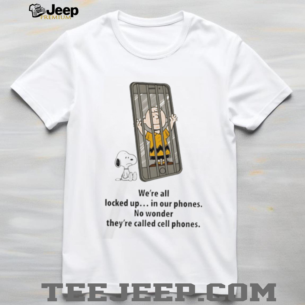 ()Snoopy & Charlie Brown Cell Phones Satirical Cartoon T Shirt, Treat yourself or make a great gift for your loved ones