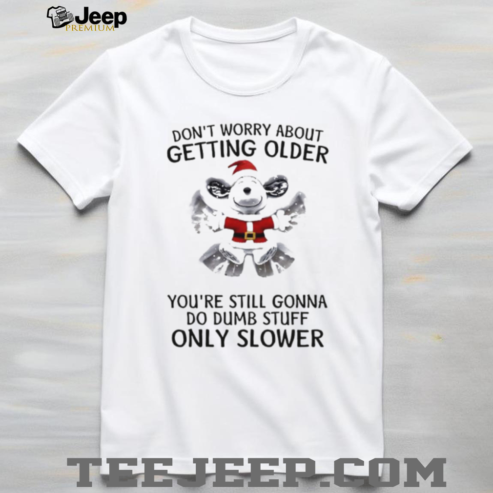 This Snoopy don’t worry about getting older you’re still gonna do dumb stuff only slower Christmas shirt is not just a holiday garment; it’s a celebration of laughter and timeless cartoon charm. Featuring Snoopy in a relatable and funny situation, this t-shirt is perfect for holiday parties, family gatherings, or just spreading some cheer. The humorous message and festive design make it a standout piece for the Christmas season. Made from a soft and comfortable cotton blend, this shirt will keep you feeling good all season long.