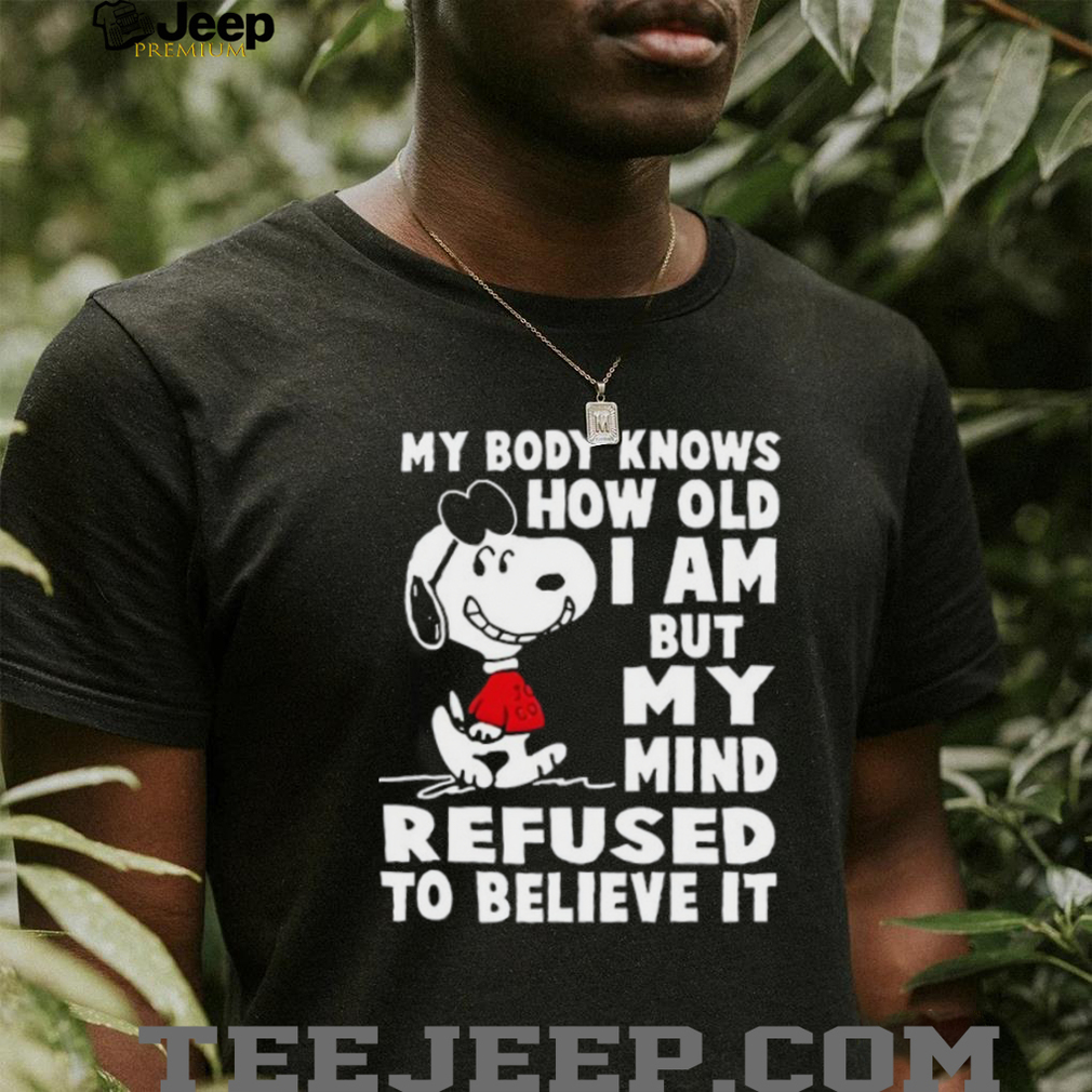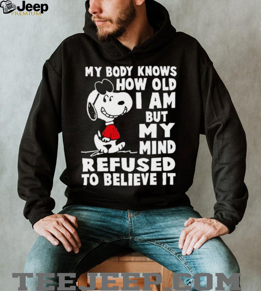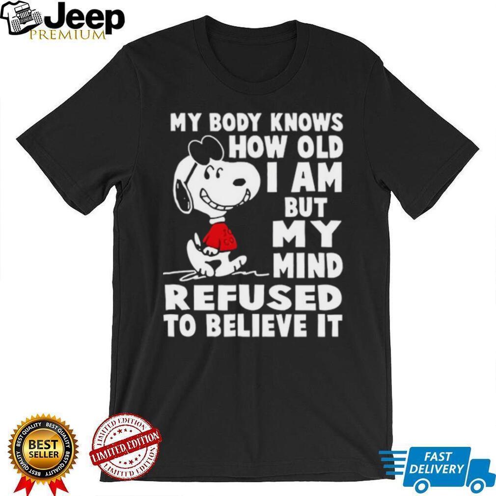 Pair this Snoopy My Body Knows How Old I Am T Shirt with your favorite jeans or comfy joggers for a relaxed, everyday look. It’s more than just a shirt; it’s a statement that says, “I’m aging, but I’m still young at heart!” This tee solves the problem of finding a unique and funny gift for the Snoopy-loving person in your life. Made with a soft cotton blend, it offers all-day comfort and a fit that’s just right. Available in sizes S to 5XL.