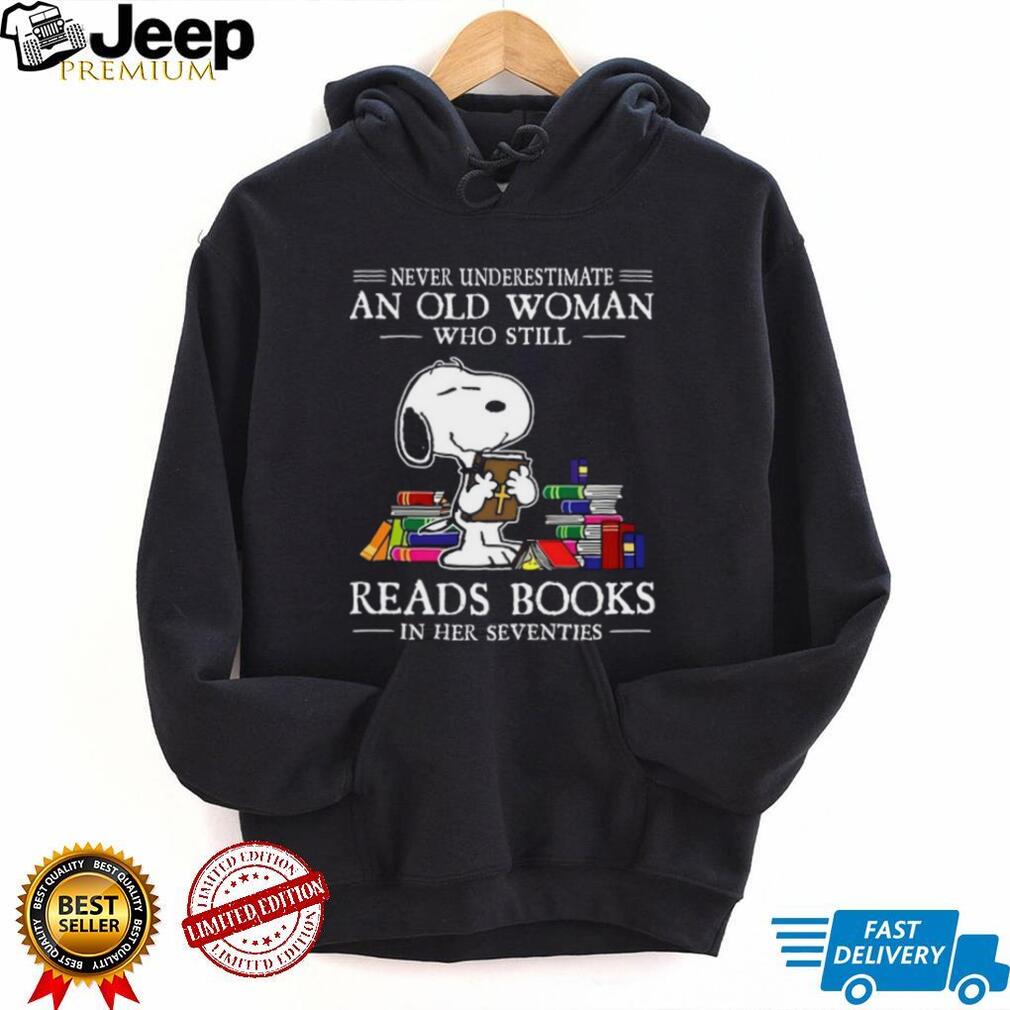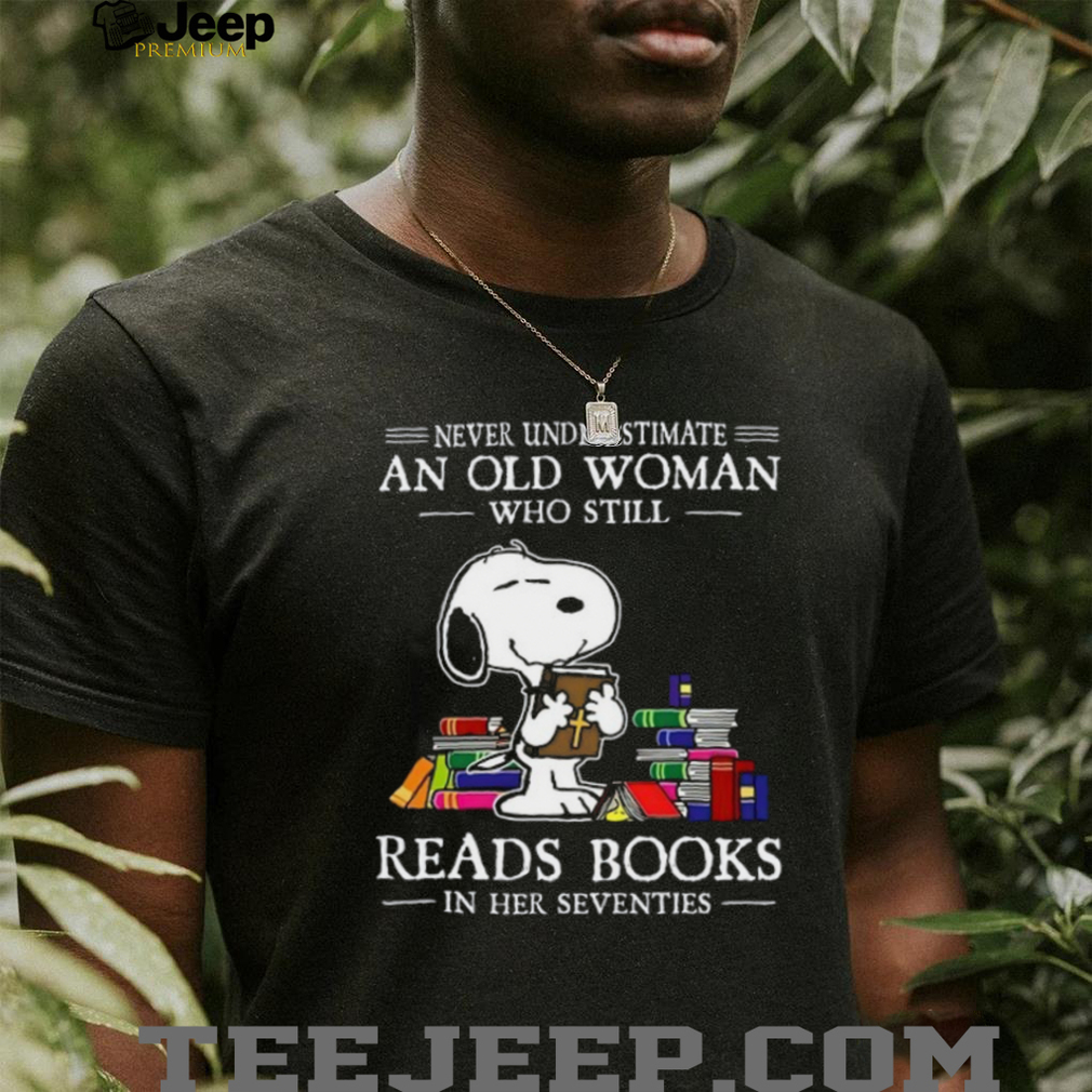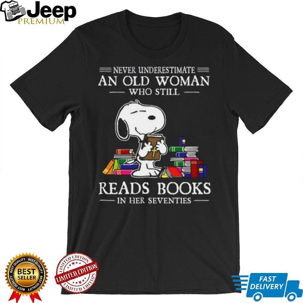 (Snoopy Reading Bible Never Underestimate An Old Woman In Her 70s T Shirt)