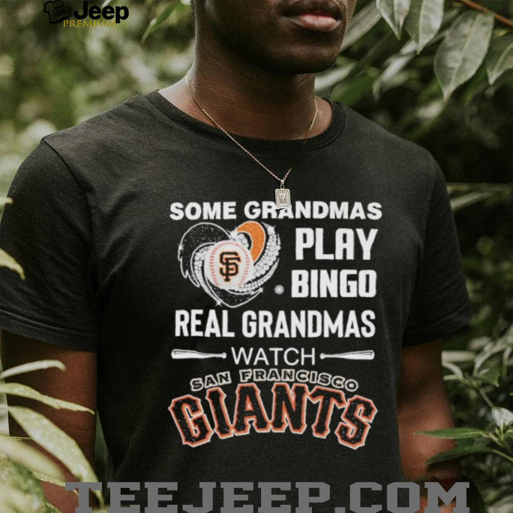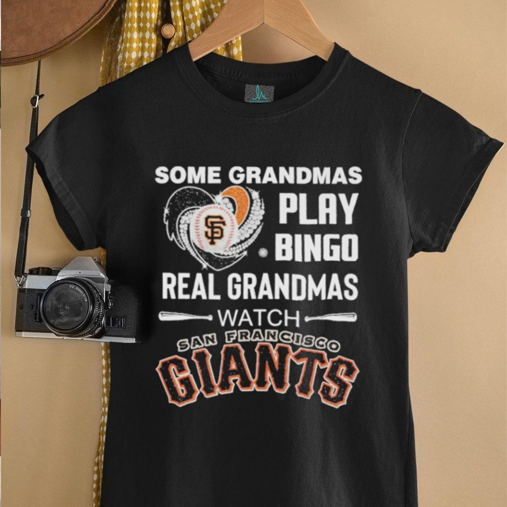 A “Some Grandpas Play Bingo Real Grandpas Watch San Francisco Giants Diamond Heart T-shirt” is a piece of apparel that playfully contrasts a stereotypical image of grandfathers (playing bingo) with the more active and passionate hobby of watching the San Francisco Giants baseball team. The inclusion of the “Diamond Heart” likely signifies a deep and unwavering love for the team, suggesting a fandom that goes beyond casual interest. The shirt serves as a humorous yet heartfelt declaration of a grandfather’s dedication to his favorite baseball team, portraying him as an enthusiastic and engaged supporter rather than someone with more passive pastimes.