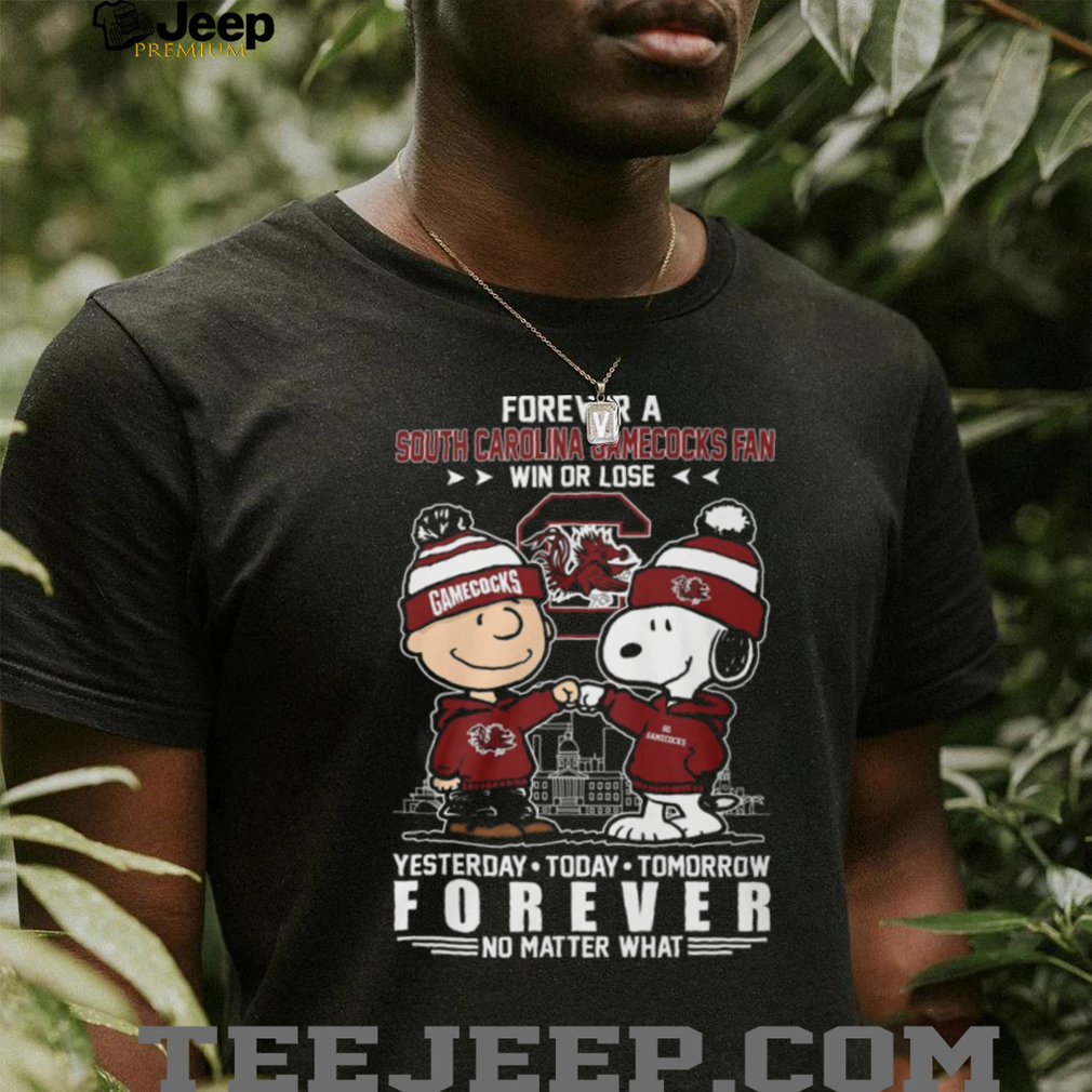 👕 About South Carolina Gamecocks Charlie Brown and Snoopy Forever Fan T Shirt