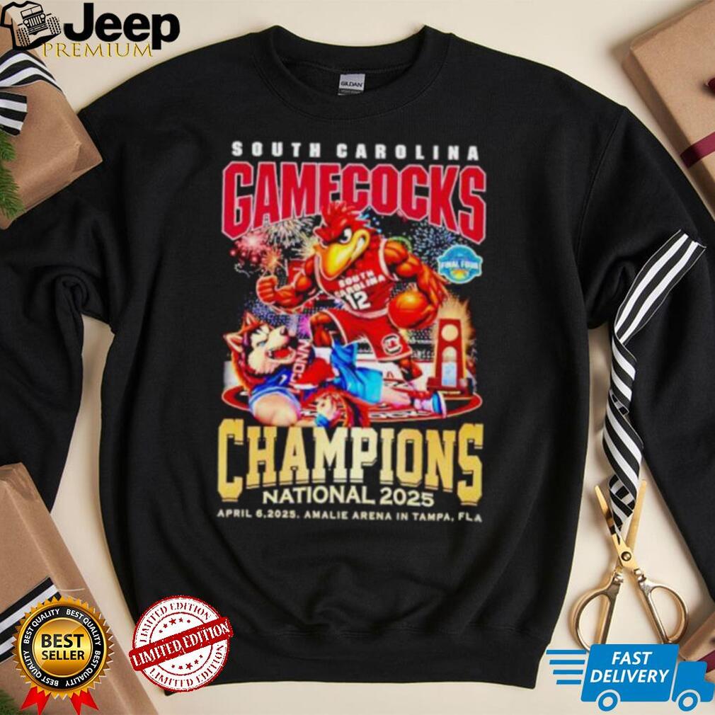 This “South Carolina Gamecocks Final Four national champions 2025 Cocky beat Husky mascot shirt” offers a unique and humorous 기념품 for Gamecocks fans to remember their team’s 2025 National Championship victory. It combines the слава of the championship with the playful element of mascot rivalry, adding an extra layer of enjoyment to the celebration. For fans who appreciate Cocky’s antics and the competitive spirit between the two programs, this shirt serves as a memorable and conversation-starting piece of apparel that commemorates a significant moment in South Carolina women’s basketball history and their mascot’s symbolic victory.