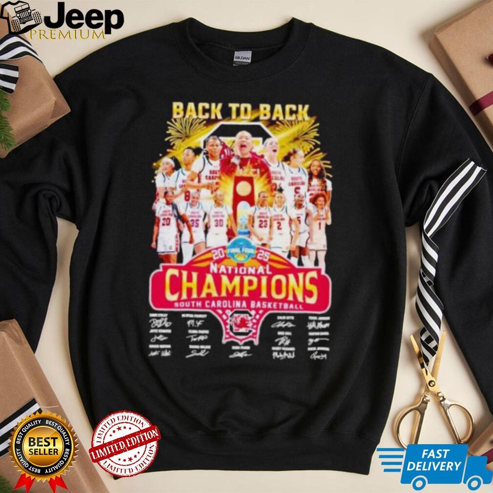 Sporting this t-shirt allows South Carolina Gamecocks fans to showcase their immense pride in a program that has achieved sustained excellence at the highest level of collegiate basketball. Winning back-to-back national championships is a testament to the team’s talent, coaching, and unwavering determination. The signatures of the players and coaches add a personal and collectible element to the shirt, allowing fans to feel a direct connection to the individuals who made this incredible feat possible. It’s a powerful way to celebrate a dynasty in the making and the unforgettable seasons of 2024 and 2025.