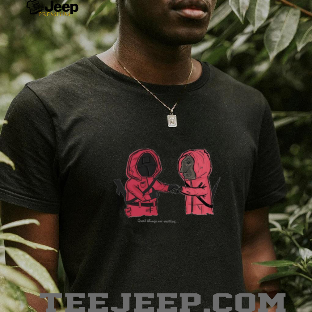 This **Squid Game** shirt exemplifies how apparel can carry deep symbolism and social commentary. By featuring the seemingly innocuous phrase “**great things are waiting**” in the context of the show, it serves as a subtle yet potent reminder of the series’ critique on capitalism, debt, and the desperation that can drive people to extreme measures. It’s a way for fans to express their appreciation for the show’s intellectual depth and its ability to provoke thought long after viewing. This emotional appeal transforms a simple garment into a statement piece, resonating with those who connected with the show’s themes beyond its thrilling plot. If you like to zoom in on how fan merchandise can embody both literal and ironic meanings, you might also be interested in the Clayton Kershaw 3000 The Strikeouts King Signature Shirt, which celebrates an athlete’s monumental achievement, contrasting the dark irony of Squid Game with genuine celebration.