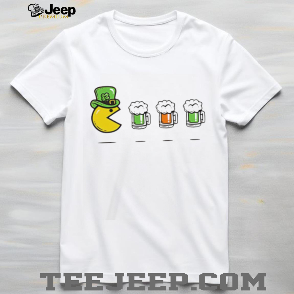 ()St. Patrick’s Day Leprechaun Pac Man Beer Mug Parody T Shirt, Treat yourself or make a great gift for your loved ones