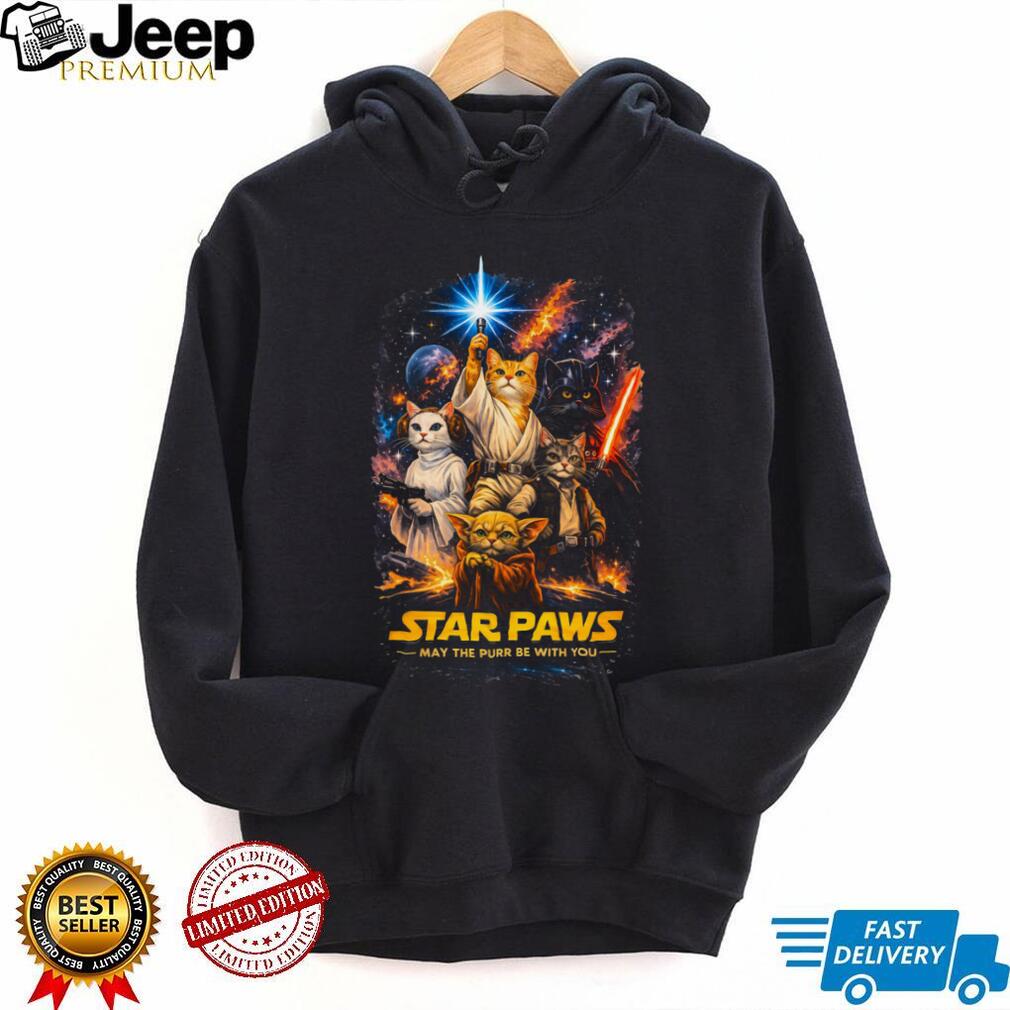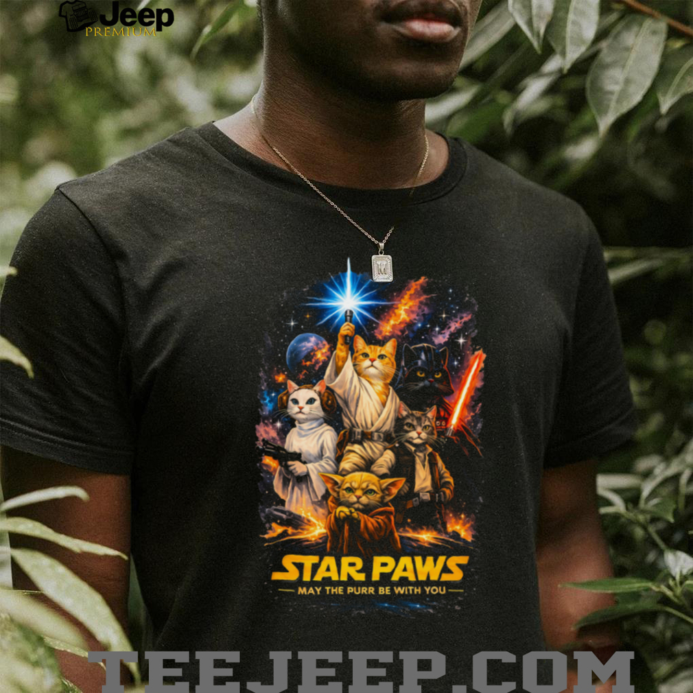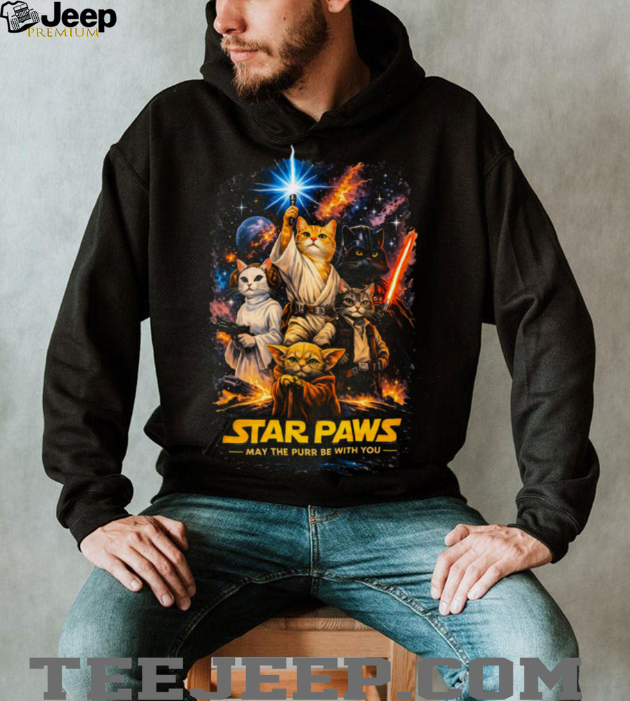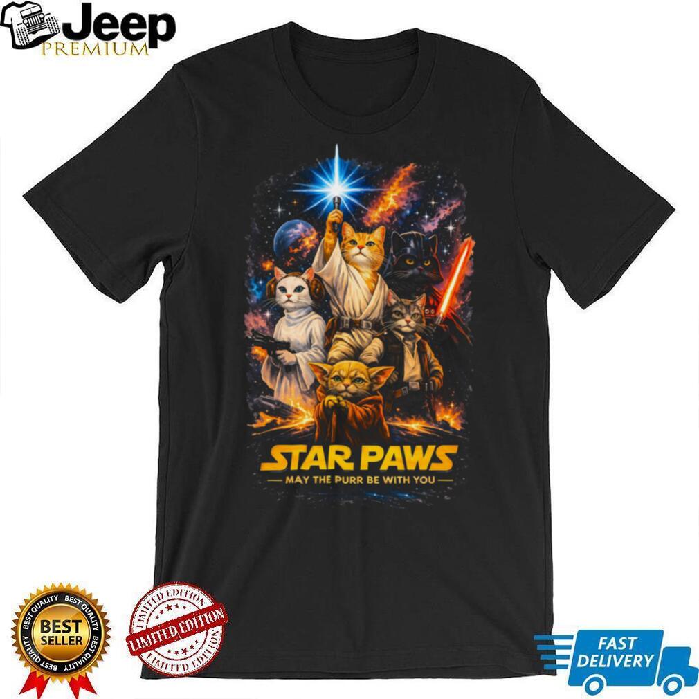đ About Star Paws May The Purr Be With You Funny Cat Space Movie Parody T Shirt