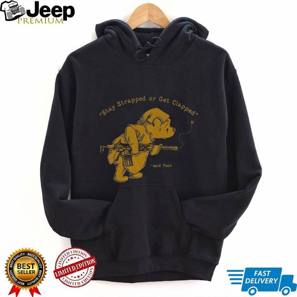 This Stay strapped or get clapped Winnie the Pooh holding gun shirt flips the script on everyone’s favorite honey-loving bear. It’s not just a shirt; it’s a conversation starter, a head-turner, and a bold declaration that you’re not afraid to embrace the unexpected. Wear with caution, laughter is guaranteed (but maybe not everywhere!).