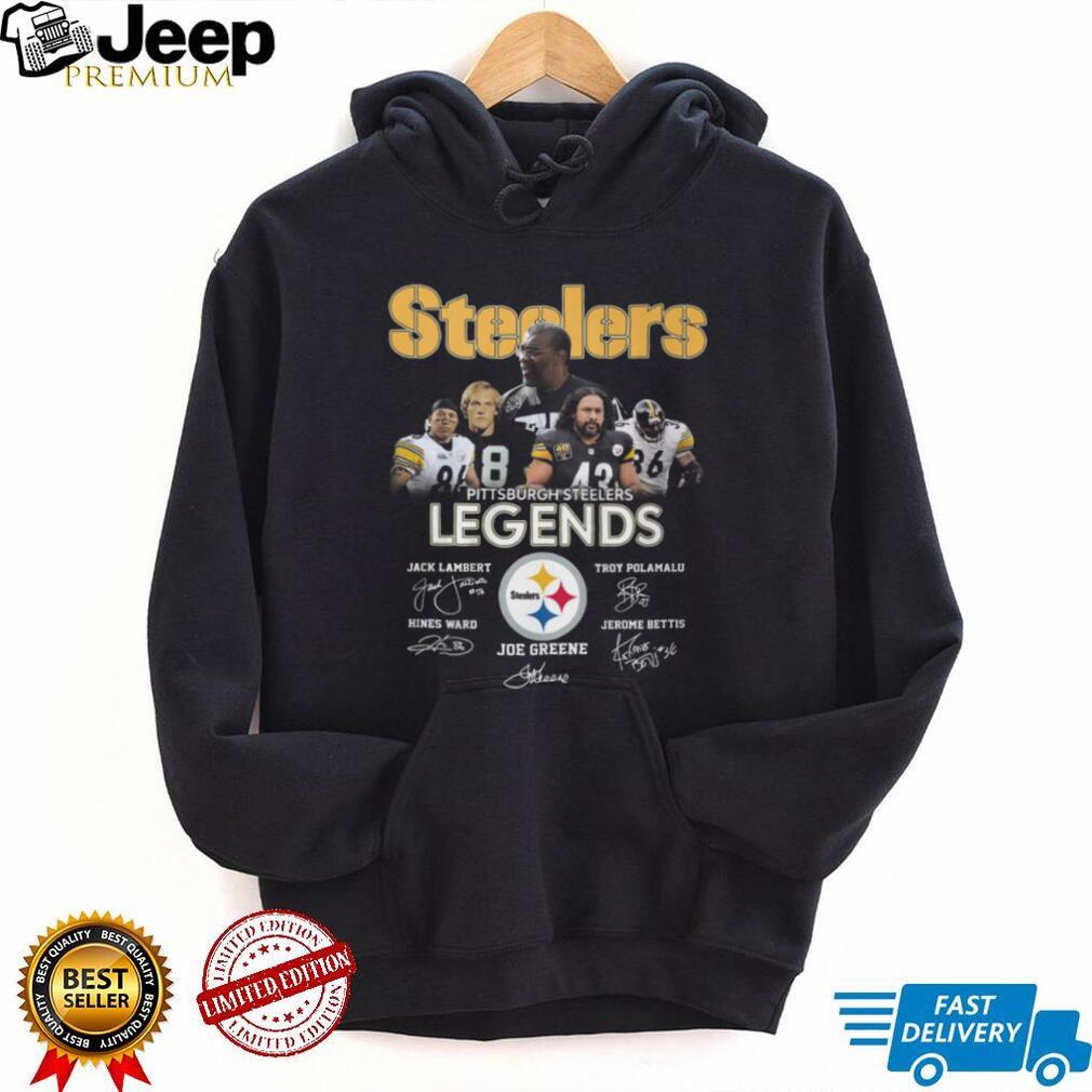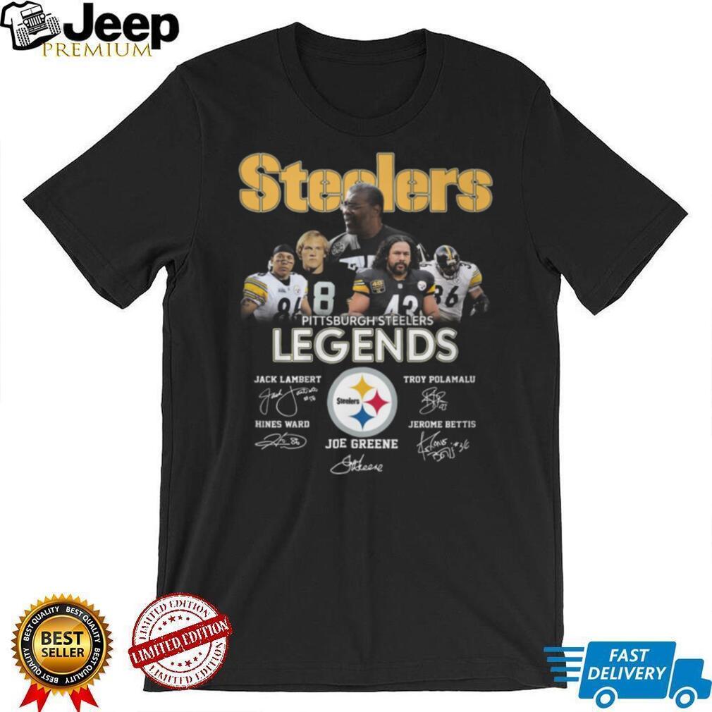 👕 About Steelers Legends Lambert Polamalu Ward Bettis and Greene Signatures Shirt