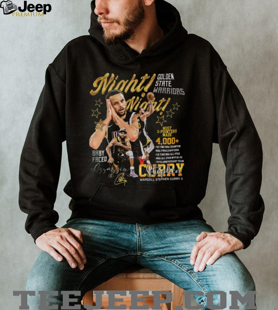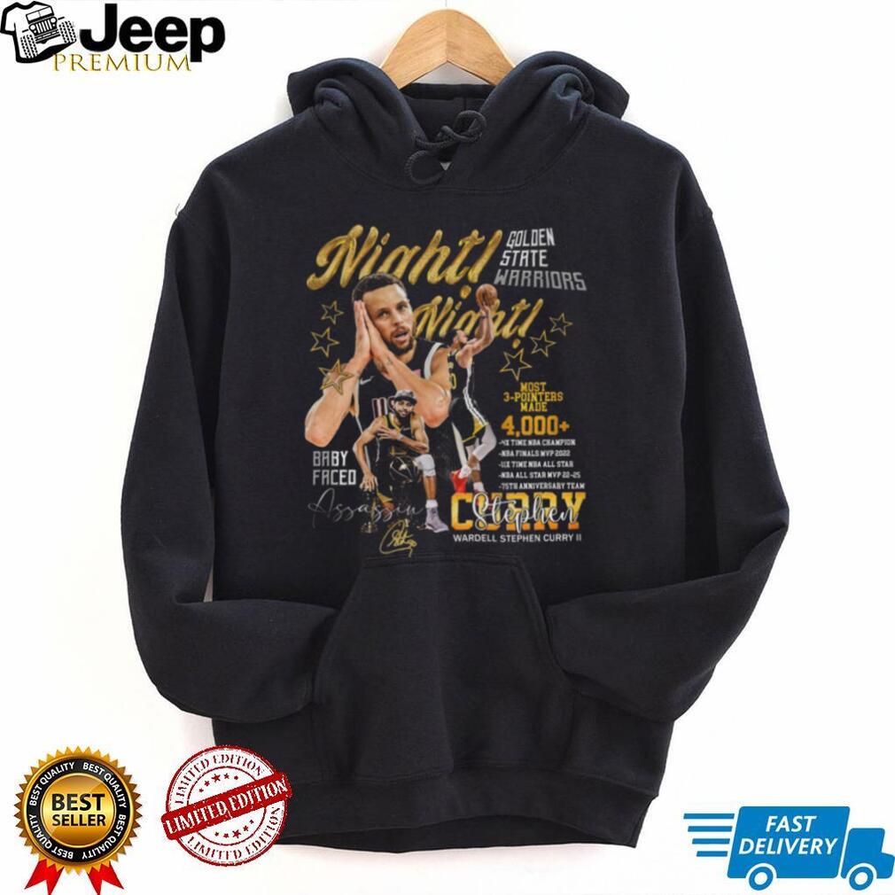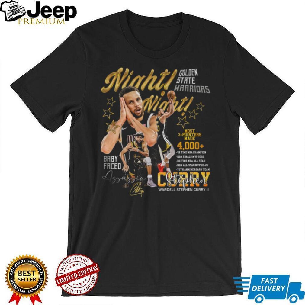 This T-shirt is crafted from a comfortable cotton blend, making it ideal for game days, watch parties, or everyday fan wear. The design captures the “Night Night” celebration, a symbol of Curry’s clutch moments and game-winning ability. It’s a must-have for any fan looking to showcase their Warriors pride and love for Stephen Curry.