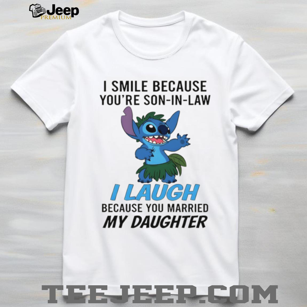 ()Stitch I smile because your son in law I laugh because you married my daughter shirt, Treat yourself or make a great gift for your loved ones