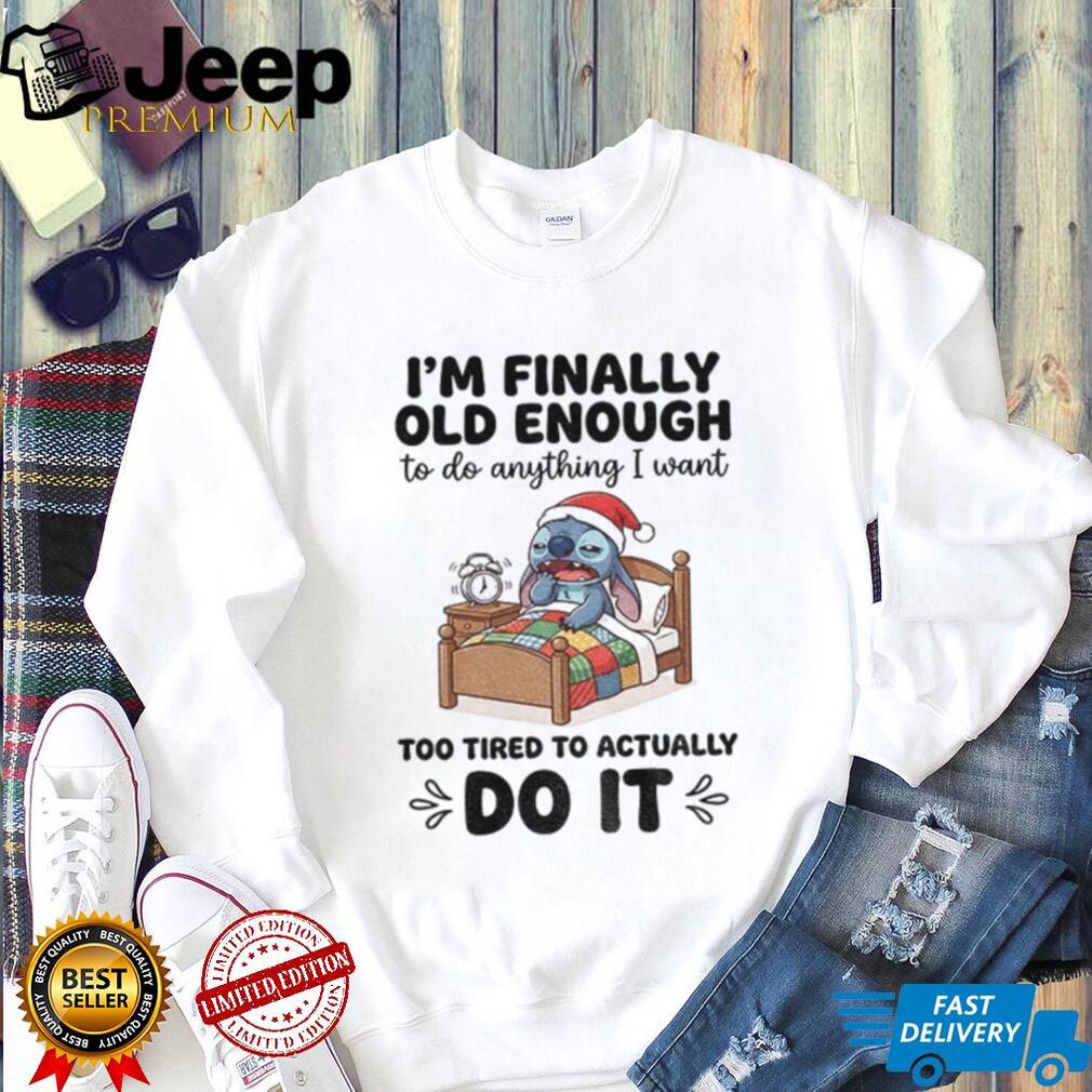 Reaching that age where you can do anything, but you’re too tired to do anything? This “Stitch I’m finally old enough to do anything I want too tired to actually do it Christmas shirt” is the perfect way to express that feeling this holiday season. It’s comfy, relatable, and features everyone’s favorite little blue alien!