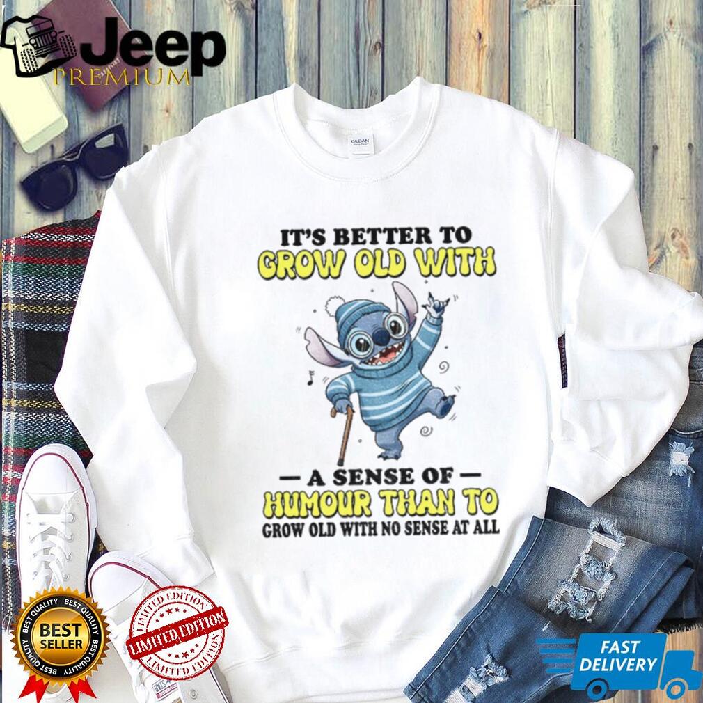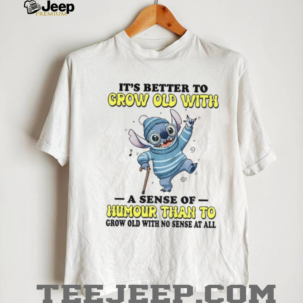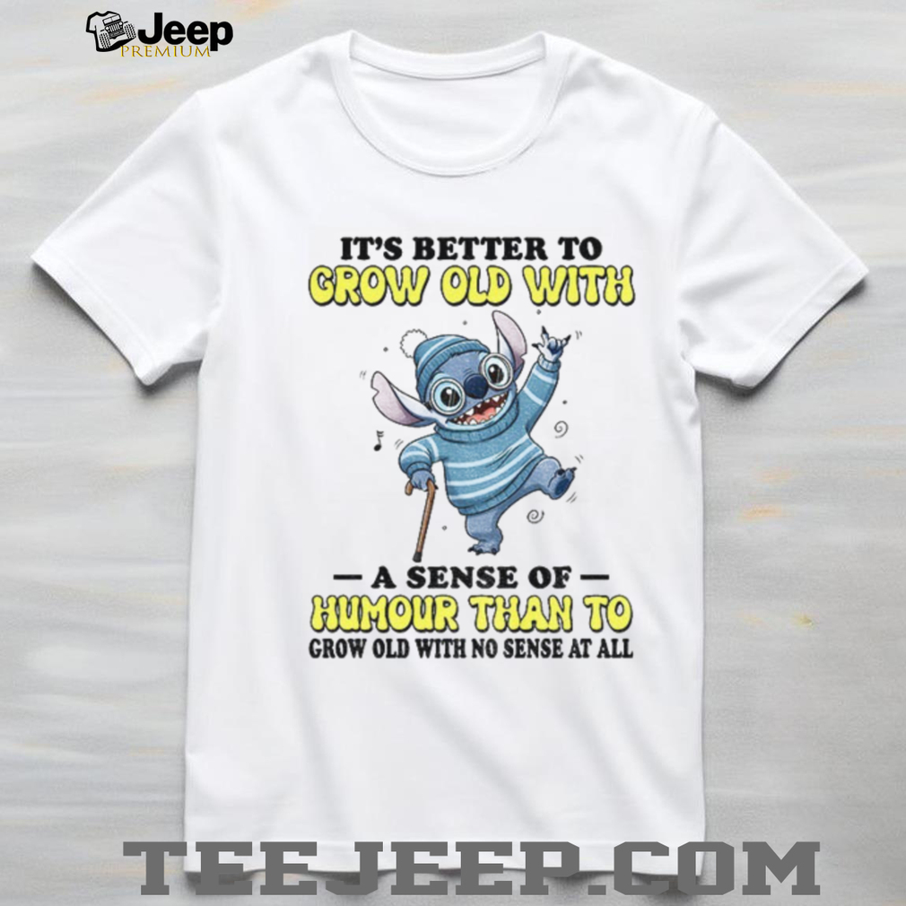Getting older doesn’t have to be a drag! This Stitch “It’s better to grow old with a sense of humour” shirt is for those who embrace aging with laughter. It’s a fun, lighthearted way to show that you’re not taking life too seriously. If you’re a Stitch fan with a zest for life, this tee is for you. Add some humor to you or someone else’s life today!