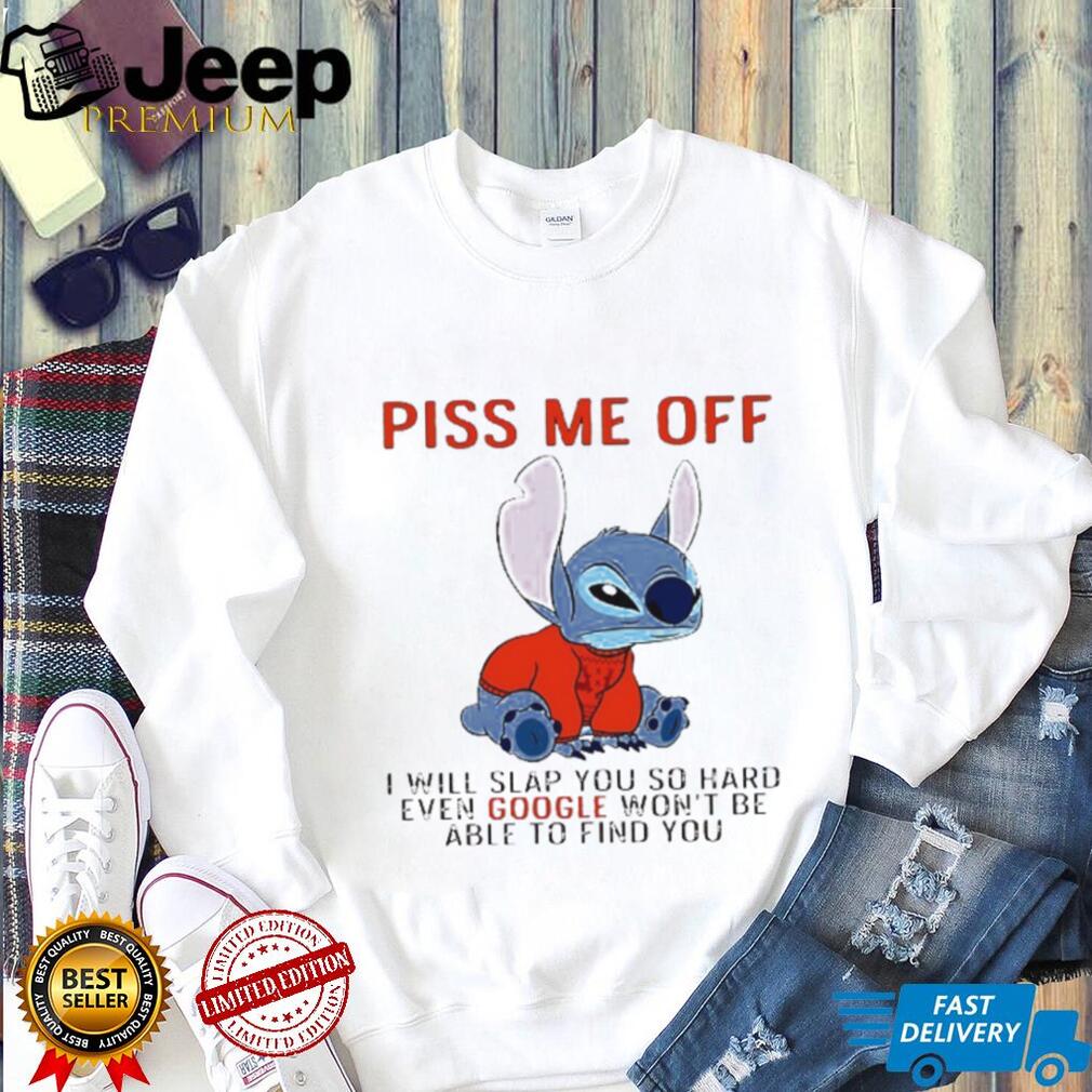 The “Stitch piss me off I will slap you so hard even Google won’t be able to find you T shirt” is a boldly humorous and surprisingly relatable piece of apparel that brings together the beloved Disney character **Stitch** with a fantastically over-the-top, no-nonsense declaration. This **T-shirt** features the iconic alien Experiment 626 alongside the viral trigger, “**Piss me off, I will slap you so hard even Google won’t be able to find you.**” This semantic keyword perfectly captures a moment of extreme frustration, delivered with a hyperbolic punchline that is both funny and widely shareable. It’s designed for those who appreciate dark humor, unexpected juxtapositions, and the mischievous charm of **Stitch**. This isn’t just a shirt; it’s a statement, a humorous warning, and a fantastic conversation starter for anyone with a playful yet firm demeanor.