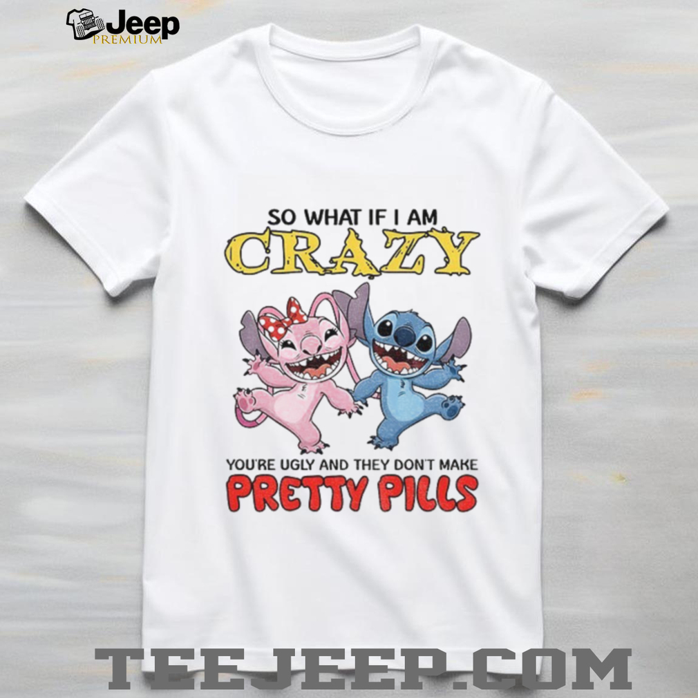 👕 About Stitch so what if I am crazy you’re ugly and they don’t make pretty pills shirt