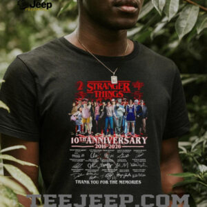 Presenting the exclusive **Stranger Things 10th Anniversary 2016 2026 Thank You For The Memories signatures shirt** – a masterfully designed and reverent tribute tailored for every devoted fan who has felt the eerie chill of the Upside Down and championed its extraordinary band of young heroes. This isn’t merely a garment; it’s a wearable testament to a shared journey, a tangible piece of the very fabric that defined a generation of television. For those who instinctively understand the foreboding flicker of Christmas lights in a dimly lit living room, or who nod knowingly at a perfectly delivered reference to Dungeons & Dragons lore, this commemorative Stranger Things shirt is far more than just official Stranger Things merchandise; it’s a badge of honor, a deeply personal symbol of shared history, and an eloquent tribute to the lasting legacy of one of modern television’s most impactful and beloved sagas.
