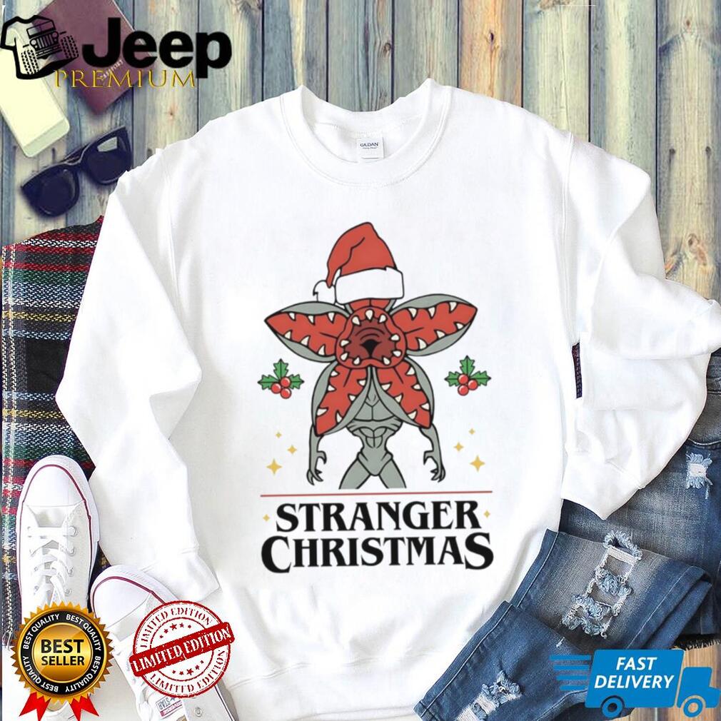 Get ready to turn the holidays upside down! This Stranger Things Demogorgon stranger Christmas shirt is the perfect mashup of spooky sci-fi and festive cheer. Featuring the iconic Demogorgon in a surprisingly jolly Christmas setting, this tee is guaranteed to be a conversation starter at any holiday gathering. Show your love for the Upside Down with a touch of Christmas spirit.