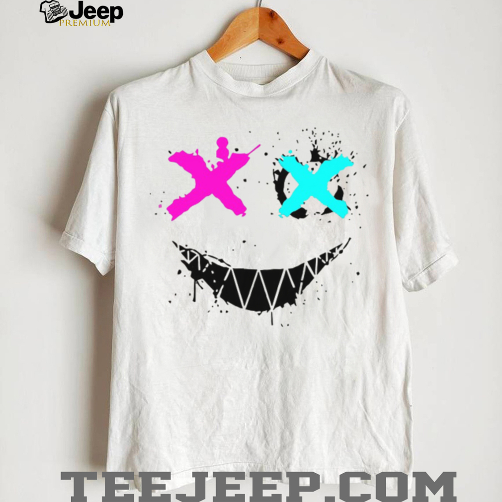 (Streetwear Pink and Blue Cross Eye Graffiti Smiley Face White T Shirt)Streetwear Pink and Blue Cross Eye Graffiti Smiley Face White T Shirt, Treat yourself or make a great gift for your loved ones