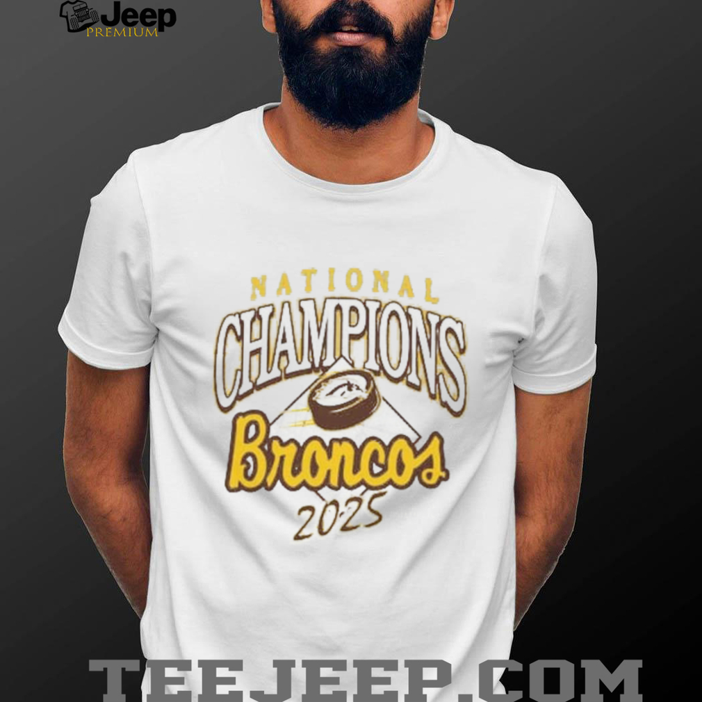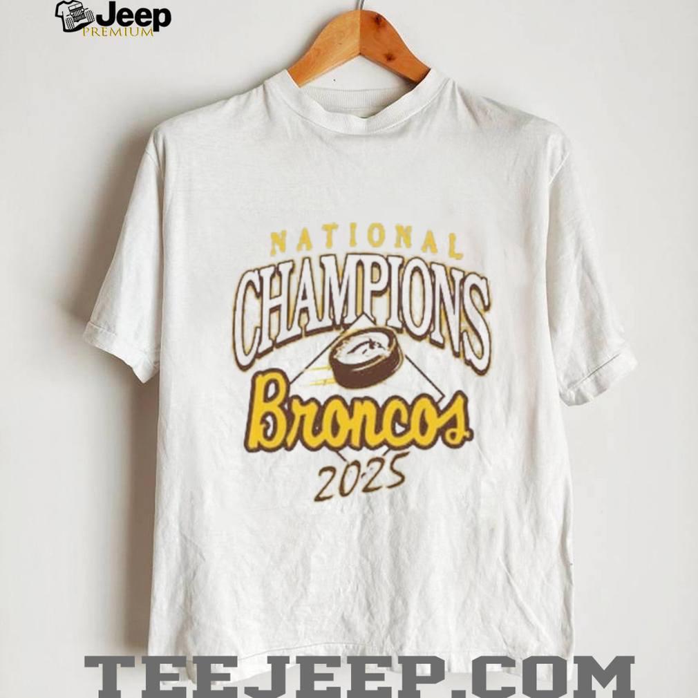 Forget those rough-and-tumble fan tees. This Summit Sportswear creation likely boasts a cool heathered texture, giving it a stylish and laid-back vibe while proudly displaying the Broncos’ 2025 National Championship status. It’s the perfect way to show you’re a fan with both excellent taste in hockey and superior taste in comfort. Imagine the envious glances from other fans who are stuck in their scratchy tees while you’re lounging in championship softness. This isn’t just fabric; it’s a wearable cloud of victory, subtly stylish and undeniably Bronco proud.