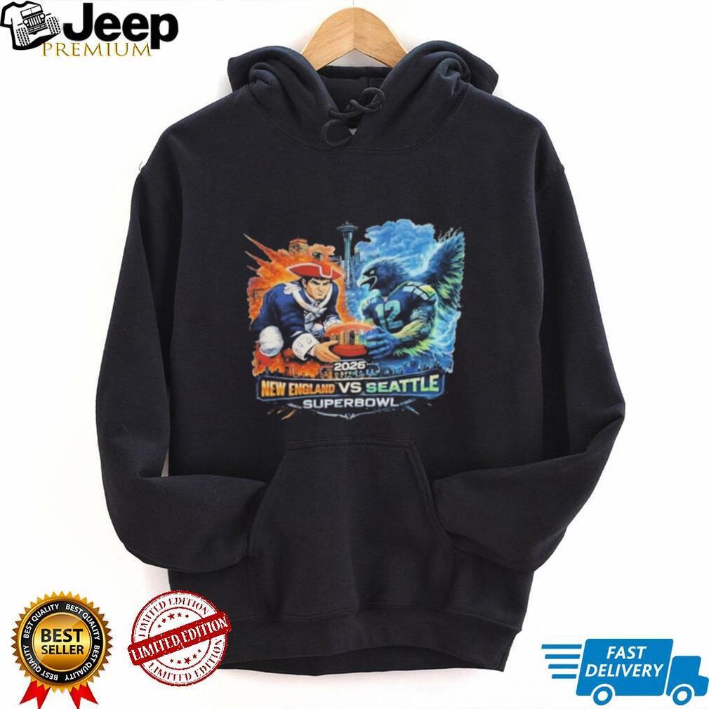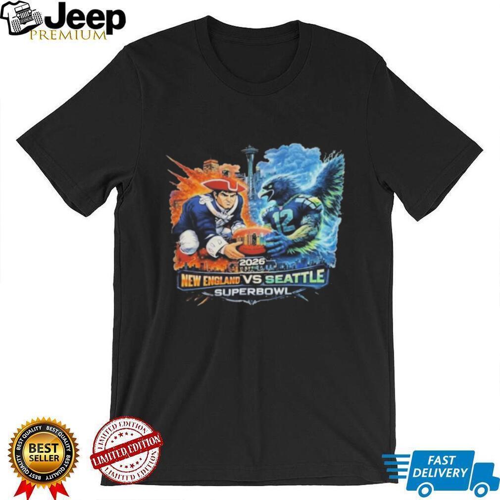 (Super Bowl 2026 New England vs Seattle Matchup T Shirt Patriots vs Seahawks Graphic Shirt)Super Bowl 2026 New England vs Seattle Matchup T Shirt Patriots vs Seahawks Graphic Shirt, Treat yourself or make a great gift for your loved ones