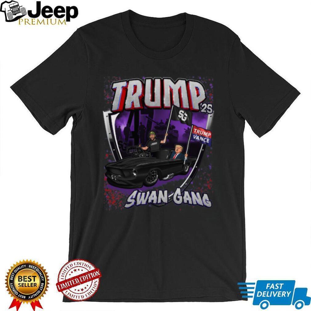 The SwanGang 25′ TRUMP T-Shirt is more than just apparel—it’s a movement. Representing strength, resilience, and unwavering support, this shirt is designed for those who believe in Trump’s vision for 2025 and beyond. With bold lettering and a striking design, this T-shirt makes a statement whether you’re at a rally, out with friends, or just showing your pride in everyday life. Stand tall and wear your values with confidence.