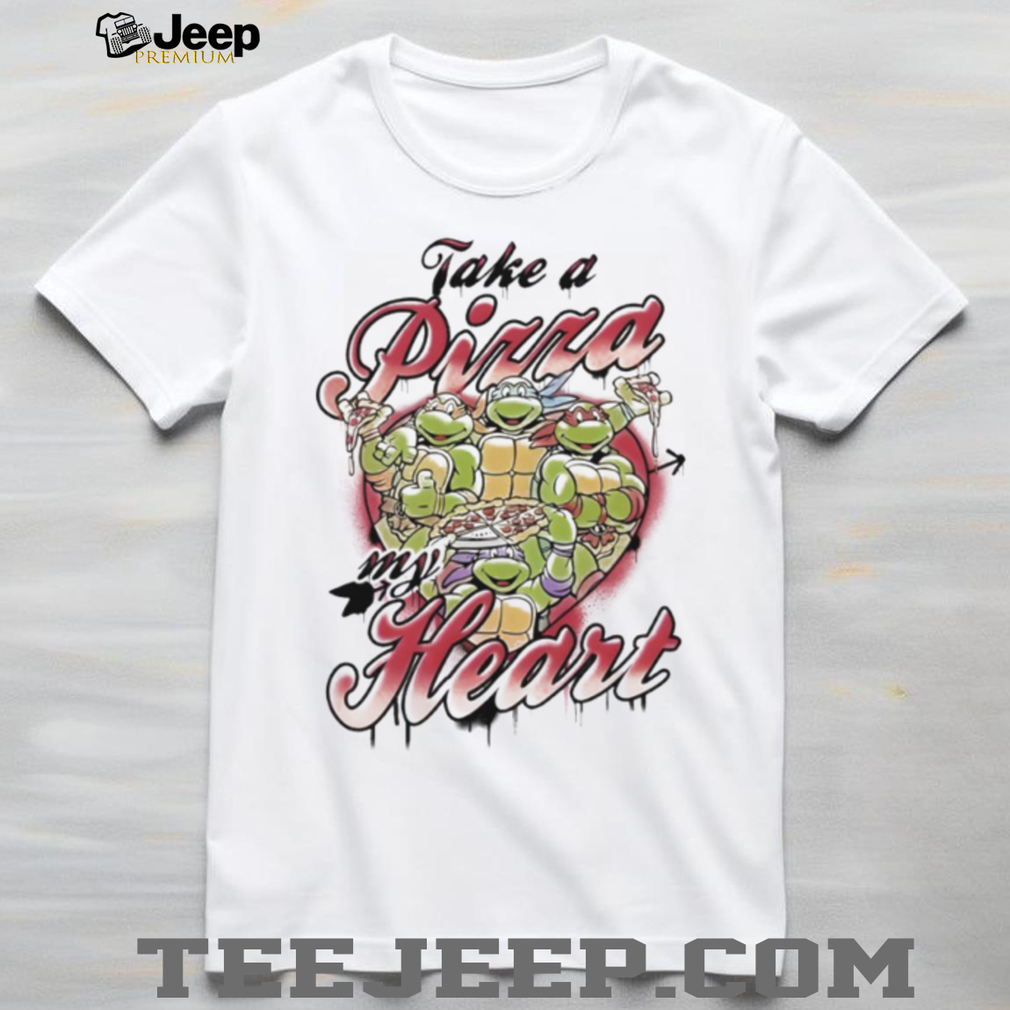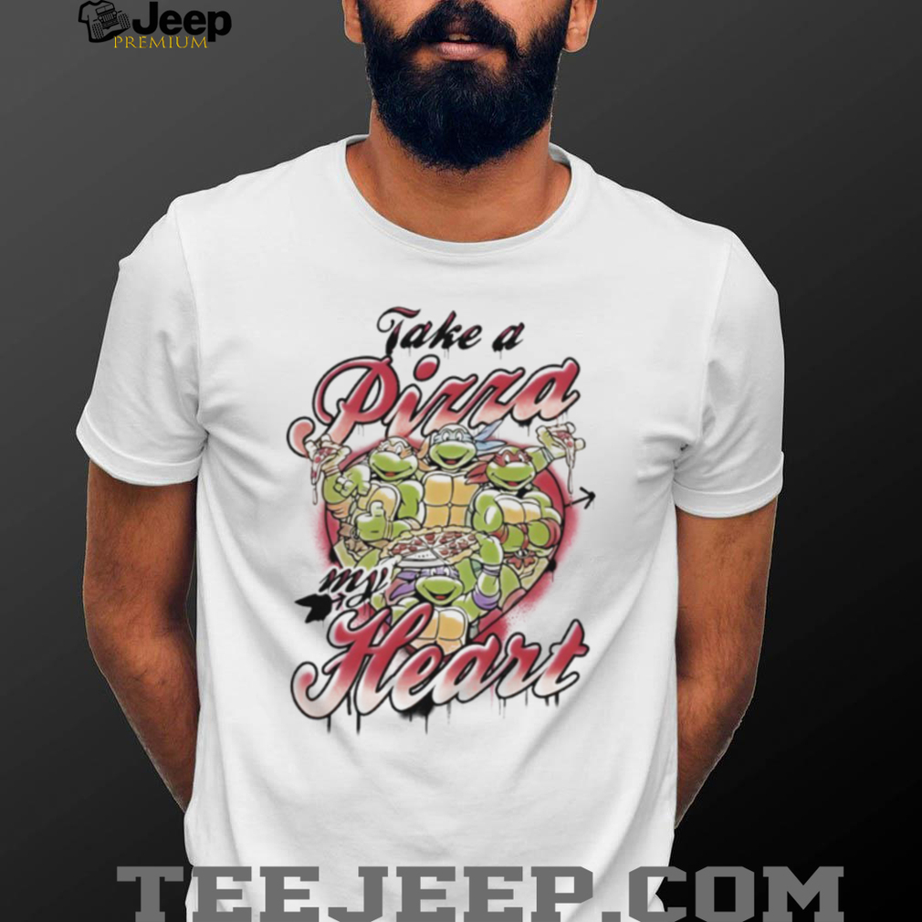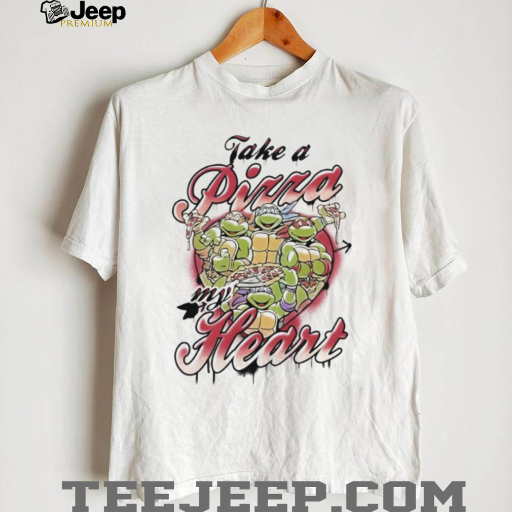 (Take A Pizza My Heart Ninja Turtles Valentine’s T Shirt)Sports bind people together because they fuel our tribal nature, providing enthusiasts with a common goal and shared identity. We desire simplicity in life, and sports give us that through highly categorized rules and the visual unity of wearing Take A Pizza My Heart Ninja Turtles Valentine’s T Shirt in team colors. Belonging to a team is a very powerful binding force that relieves our anxieties and stress. Even if we are never going to be selected for a national team, there is great joy in realizing you are competing against yourself to stay in better shape.