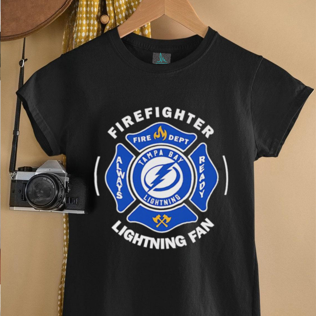 The inclusion of the phrase “always ready” on the shirt underscores a shared characteristic between the Tampa Bay Lightning and firefighters. Just as the Lightning players must be prepared for any challenge on the ice, firefighters embody a constant state of readiness to respond to emergencies. This shirt beautifully captures this parallel, celebrating the dedication, training, and unwavering commitment to being prepared for whatever comes their way, whether it’s a crucial moment in a hockey game or a critical situation requiring immediate action to save lives and property.