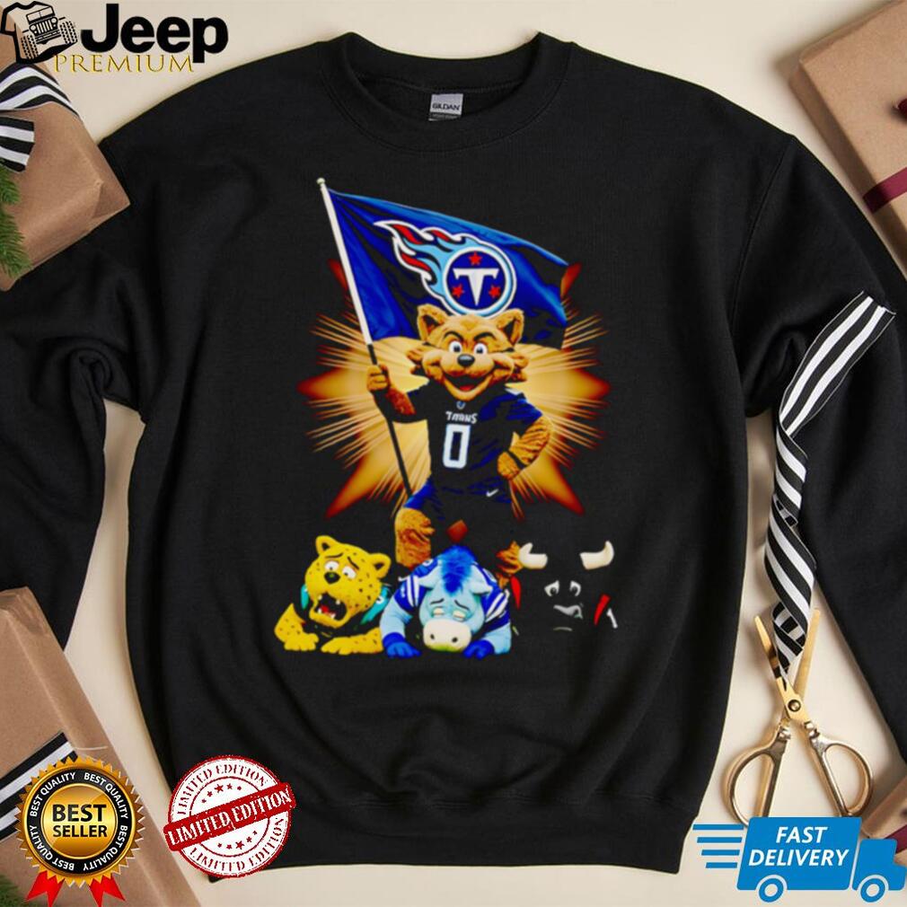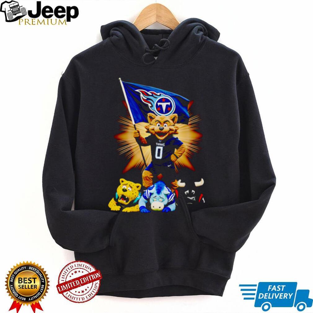 The “Tennessee Titans mascot standing with flag shirt” is a vibrant expression of team pride, capturing the dynamic spirit of the **Tennessee Titans** through their beloved **mascot** and the symbolic **flag**. This shirt is a must-have for any fan looking to showcase their allegiance to the team, celebrating both its energetic presence and its deep connection to the state of Tennessee.