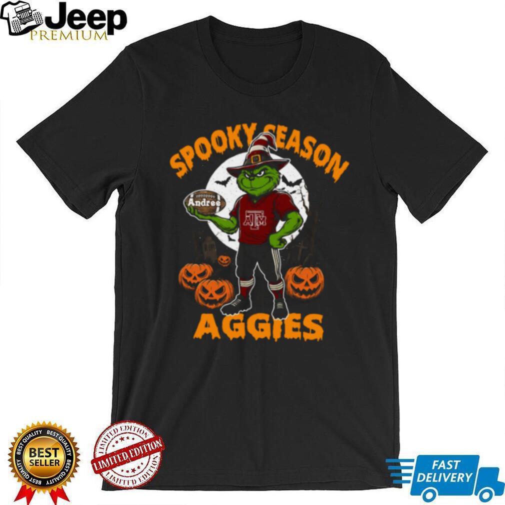 This isn’t your run-of-the-mill college tee. It combines the Aggies’ iconic logo with a Grinch-inspired Halloween theme, creating a design that’s both spirited and spooky. Imagine rocking this tee at a Halloween party or while trick-or-treating with your kids – you’re not just wearing a shirt; you’re making a statement. This shirt solves the problem of finding unique fan apparel that stands out from the crowd. Show off your love for Texas A&M and Halloween with this comfortable and eye-catching tee, made from a soft cotton blend. Available in a range of sizes for the perfect fit.