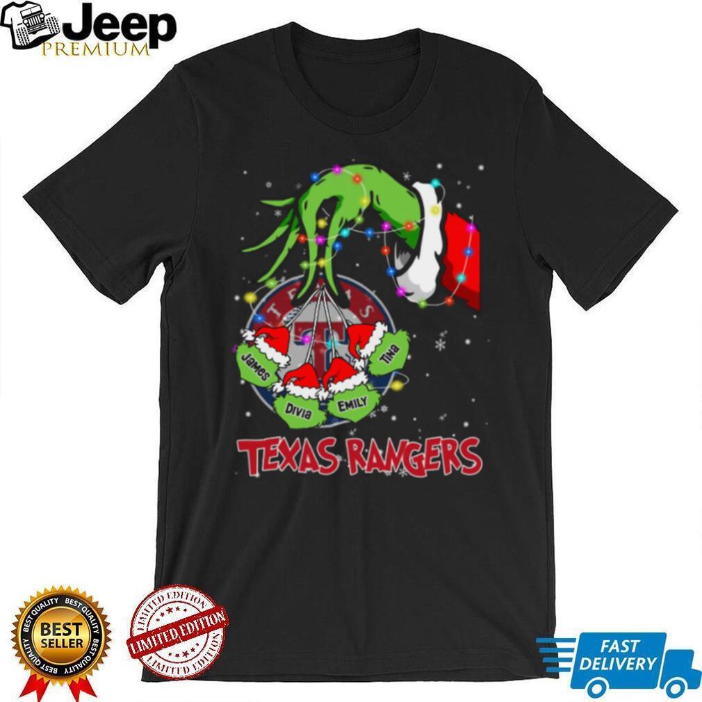 Picture this: Globe Life Field is decked out in holiday cheer, and you’re there cheering on the Rangers in style. But this isn’t just any game day; it’s the Christmas season, and you’re sporting a unique Texas Rangers Grinch Holiday Lights Shirt. It’s the perfect way to show your team spirit with a festive and personalized touch!