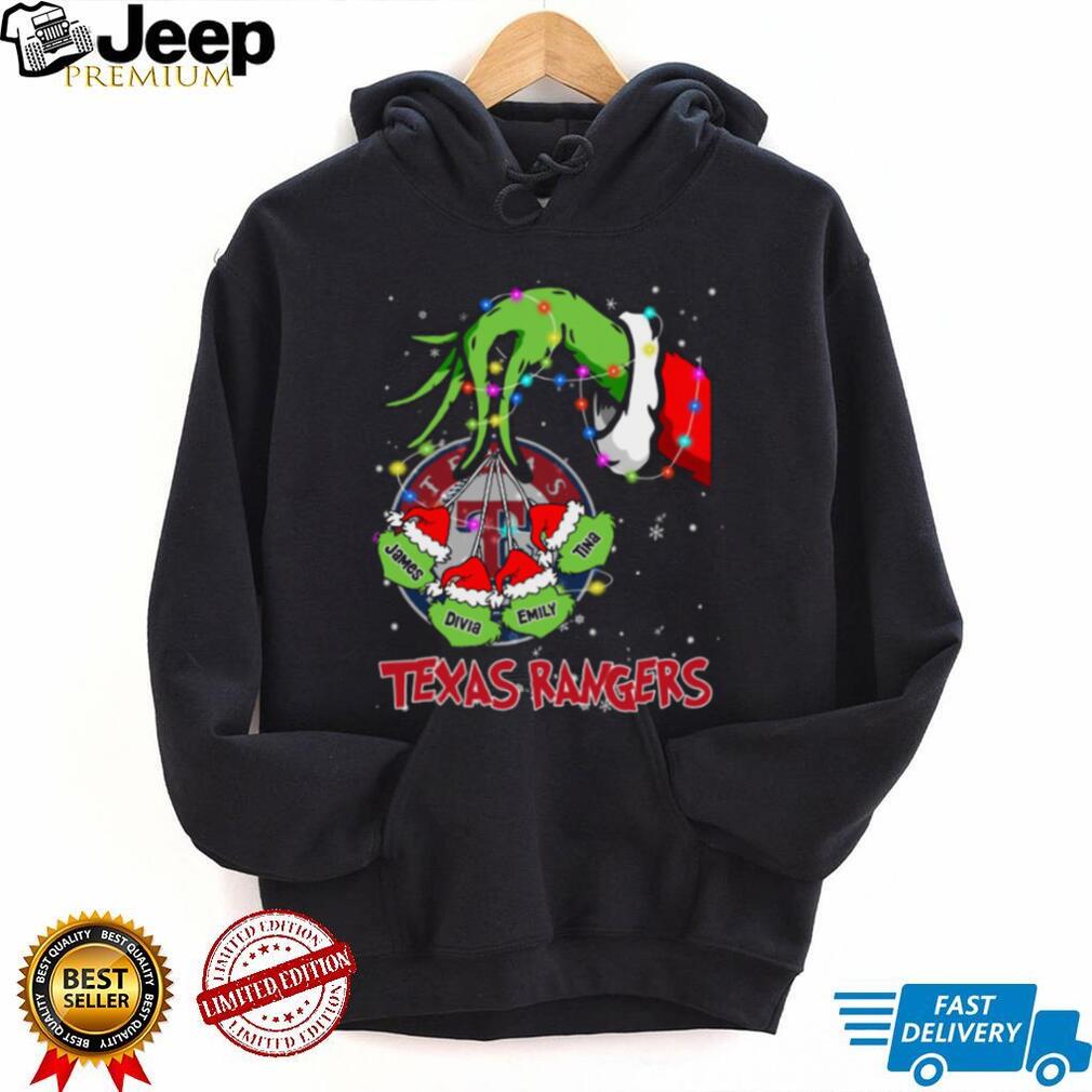 This Texas Rangers Grinch Holiday Lights Shirt isn’t just another piece of fan gear; it’s a statement that you’re a dedicated Rangers fan who loves the holidays. Imagine the smiles and nods of appreciation you’ll get as you wear this tee around town or to your next Christmas gathering. This shirt solves the problem of finding a unique and spirited way to express your support for the Texas Rangers, combining a playful Grinch design with holiday lights and the option to personalize it with a name or message. Made from a comfortable and durable cotton blend, it’s perfect for wearing to games, holiday parties, or just showing off your Rangers pride. Available in a range of sizes, it ensures a great fit for every fan.